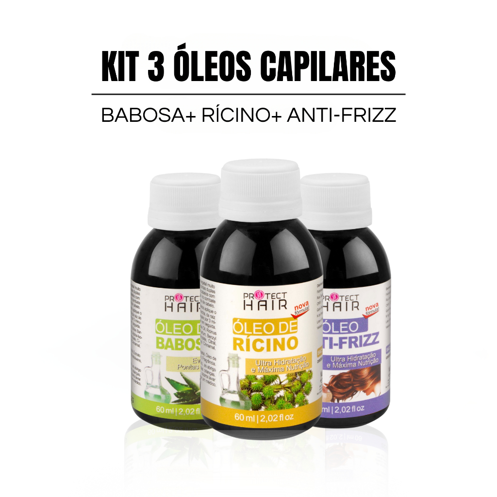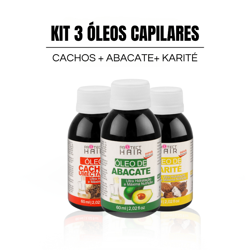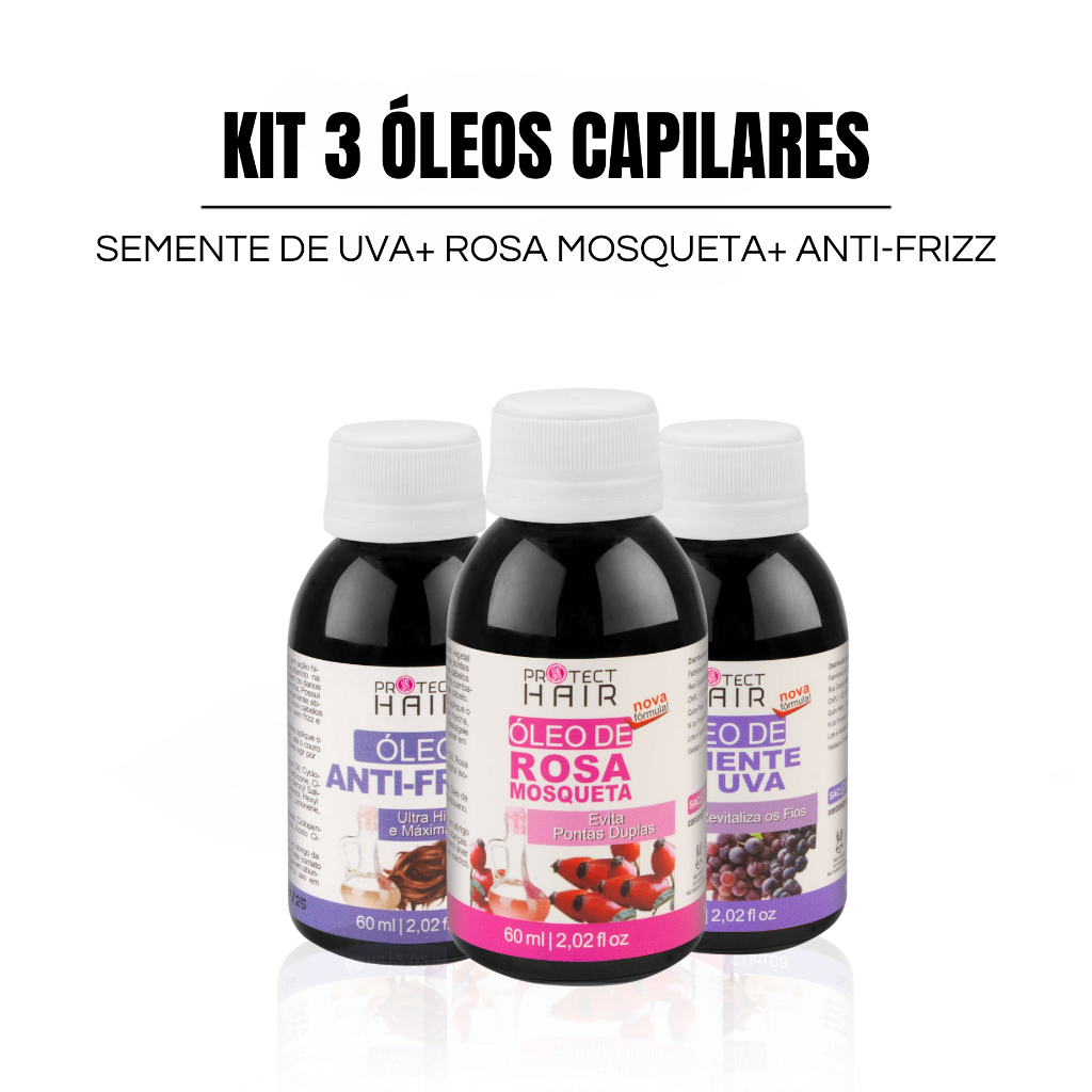 Kit 3 óleos vegetais para umectação terapia capilar hidratação nutrição Protect Hair 60ml