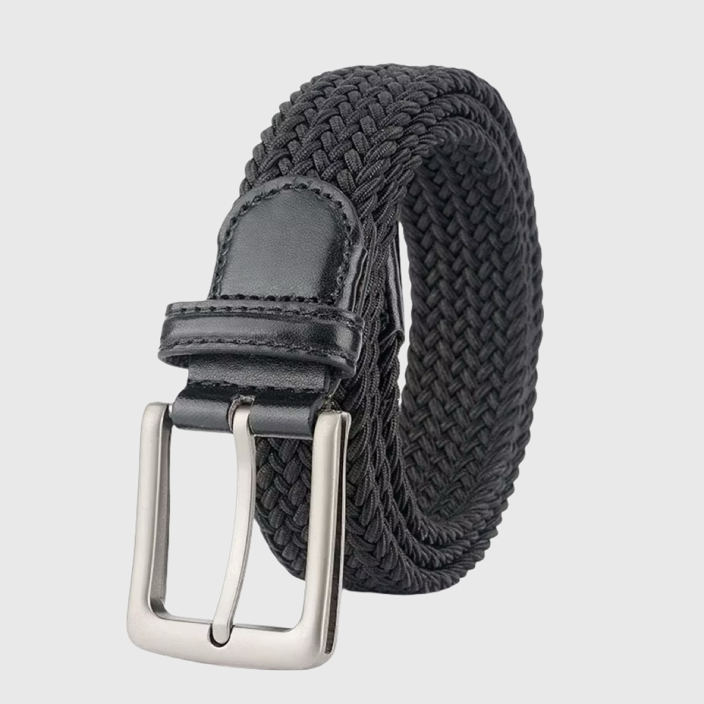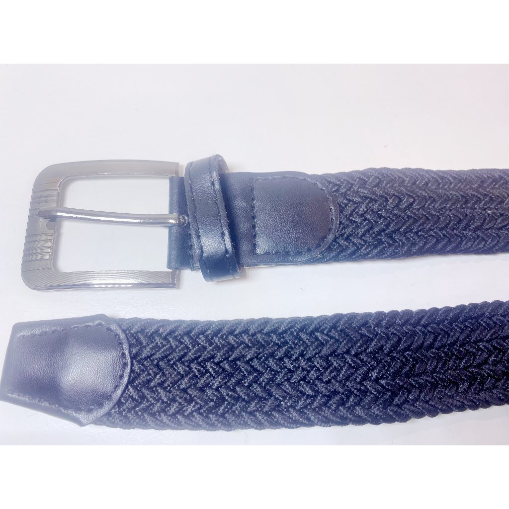 Cinto Social Masculino Tecido Trançado Elástico Ponteiras Em Couro