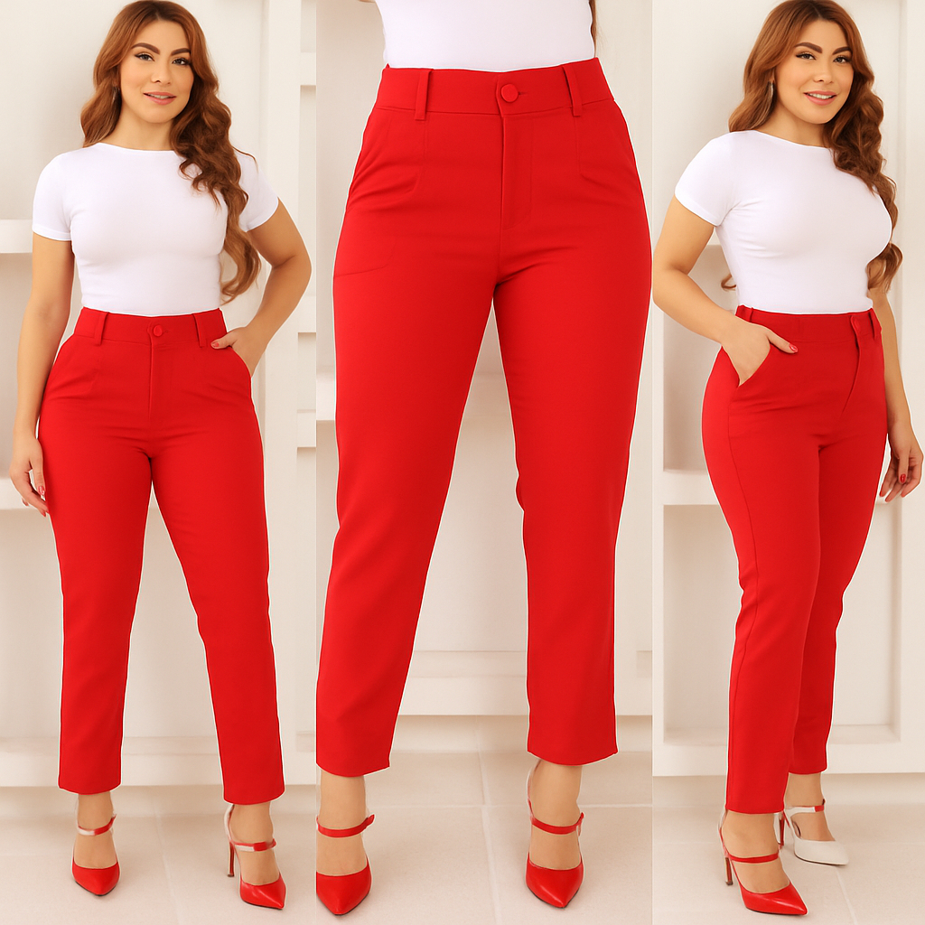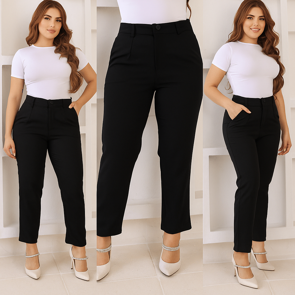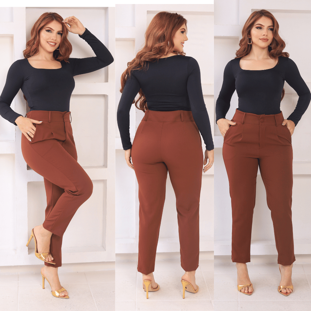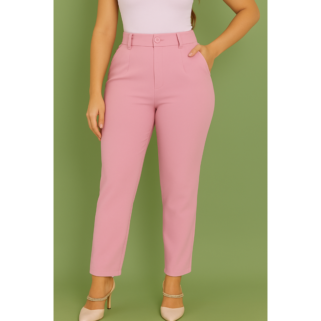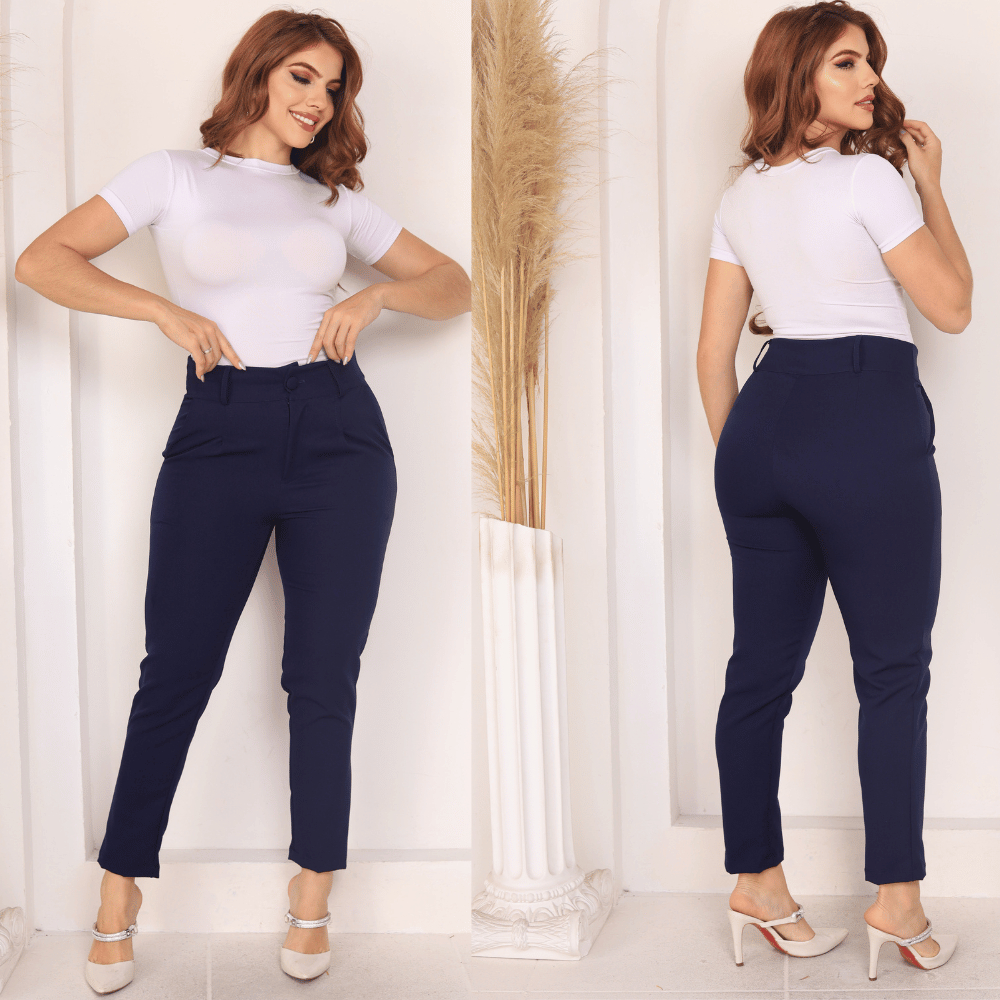 Calça Feminina de Alfaiataria Premium – Cintura Alta, Bolsos, Pinças, Tecido de Qualidade