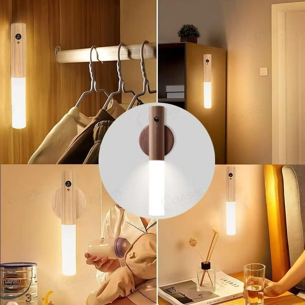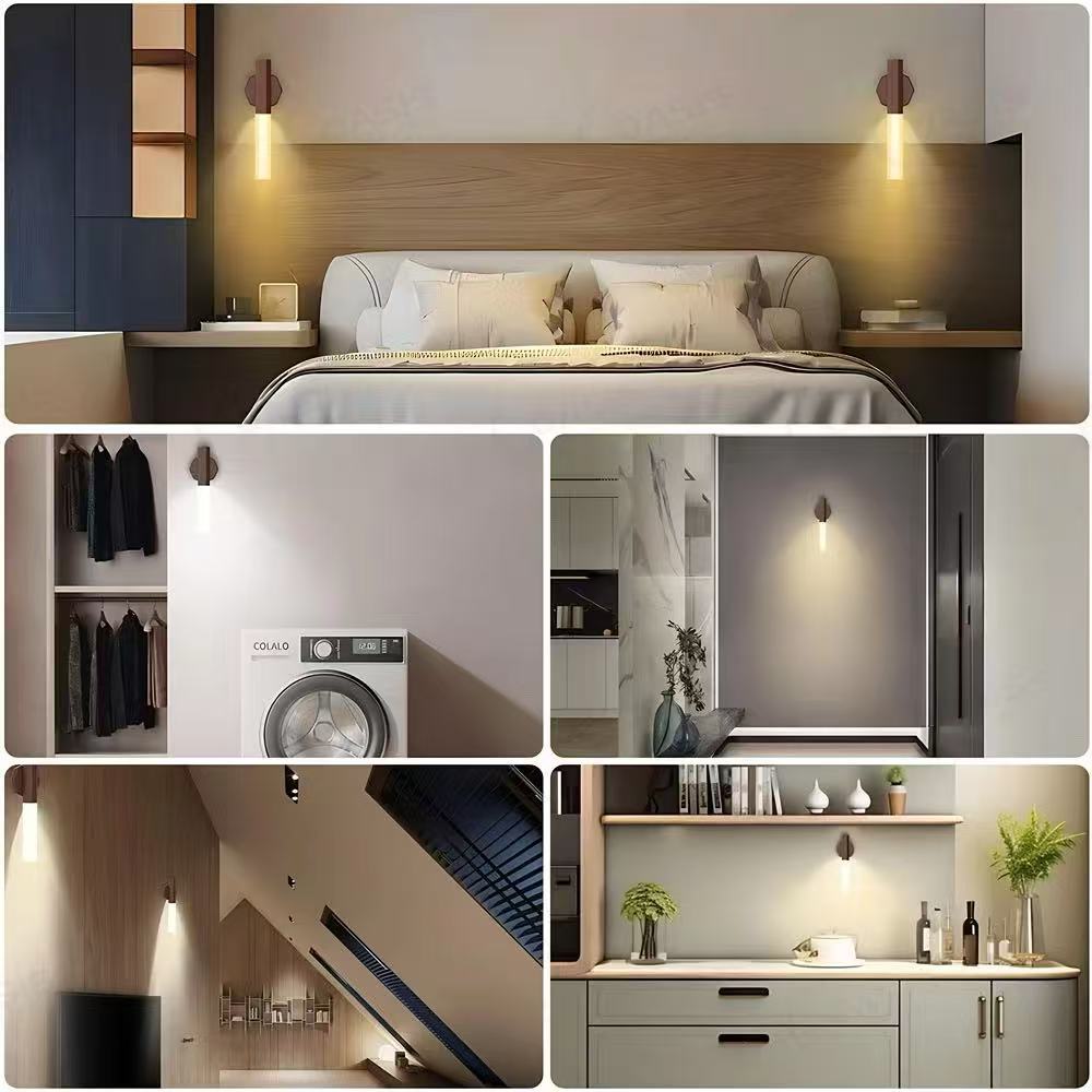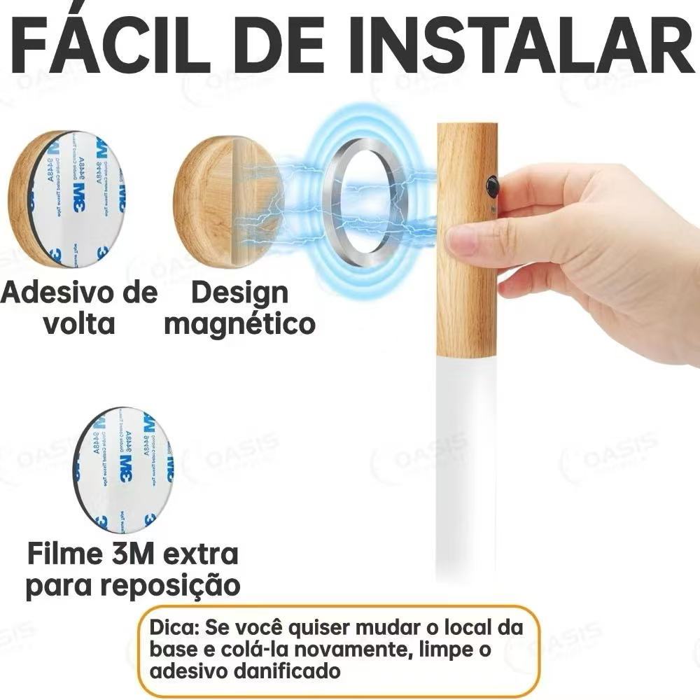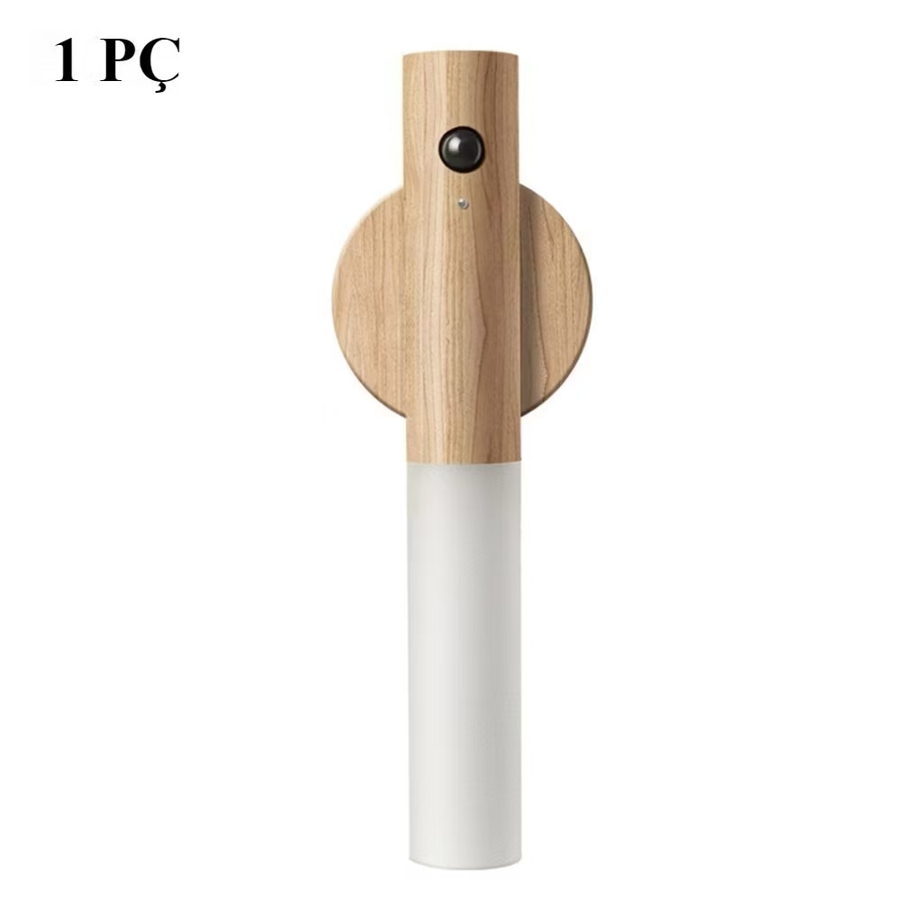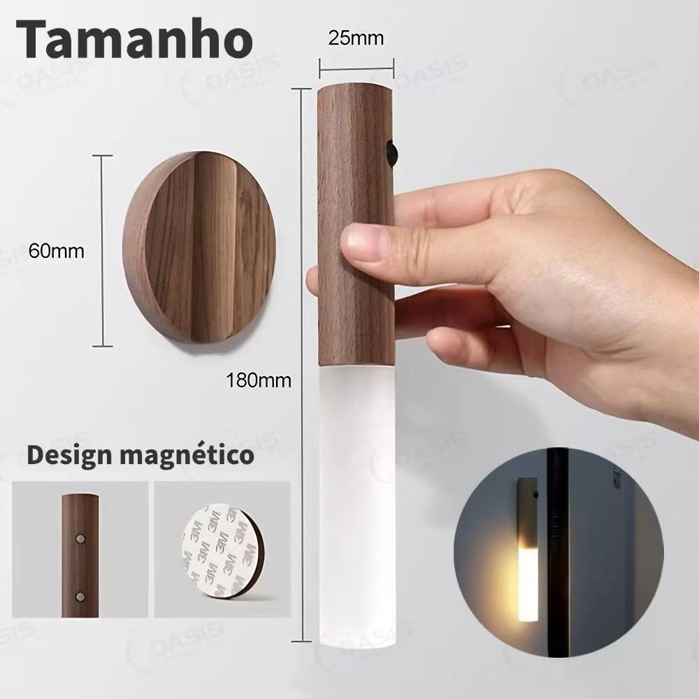 Luminaria Led Recarregável Sensor de Movimento Arandela de Madeira Minimalist Mesa Parede Magnética