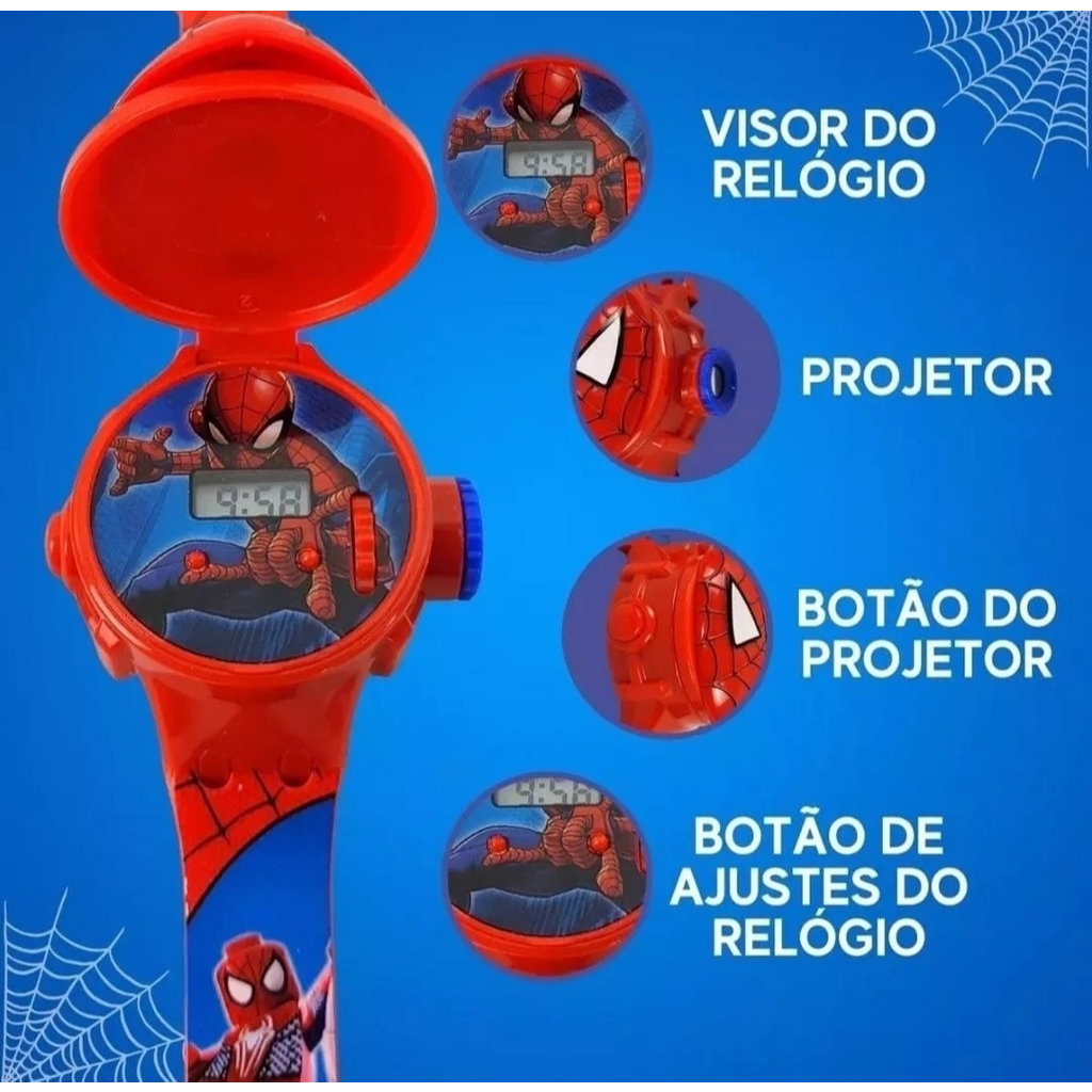 Relógio Homem Aranha Projetor De Imagens Para Crianças Acima de 3 Anos