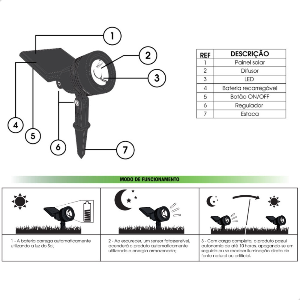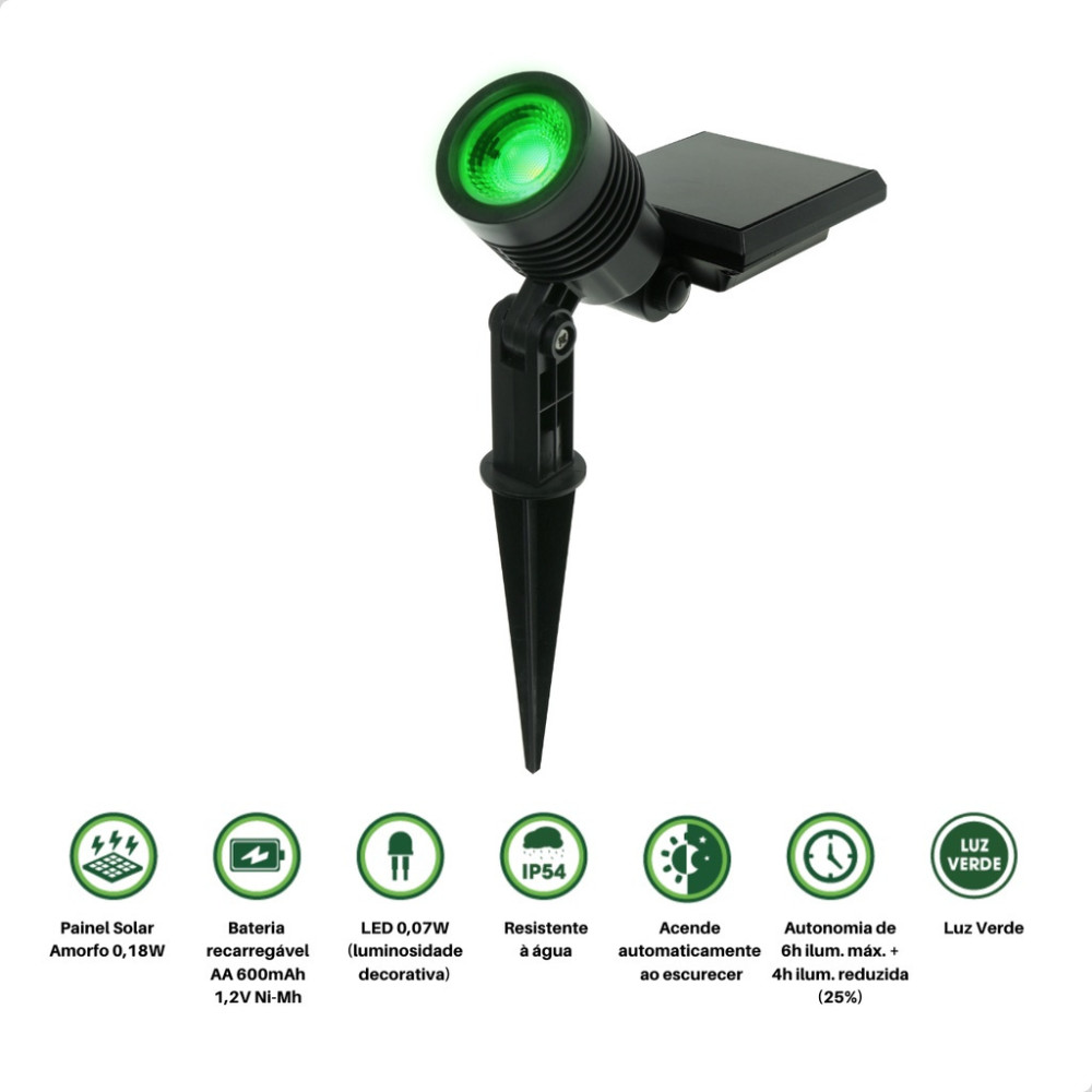 Kit 4 Espetos Refletor Led Spot Solar Verde Externo Jardim