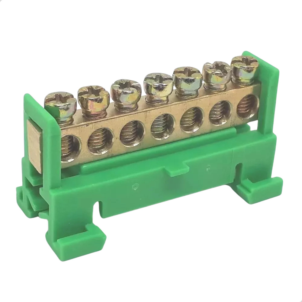 Kit 10 Barramentos Borneira Terra 7 Vias Verde 1,5-16mm²