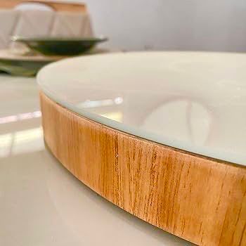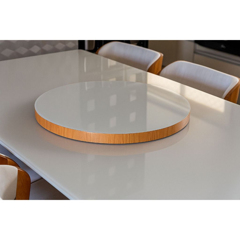 PRATO GIRATÓRIO CENTRO DE MEDA 50CM SALA DE JANTAR BORDA DE MADEIRA VIDRO OFF WHITE LAQUEADO