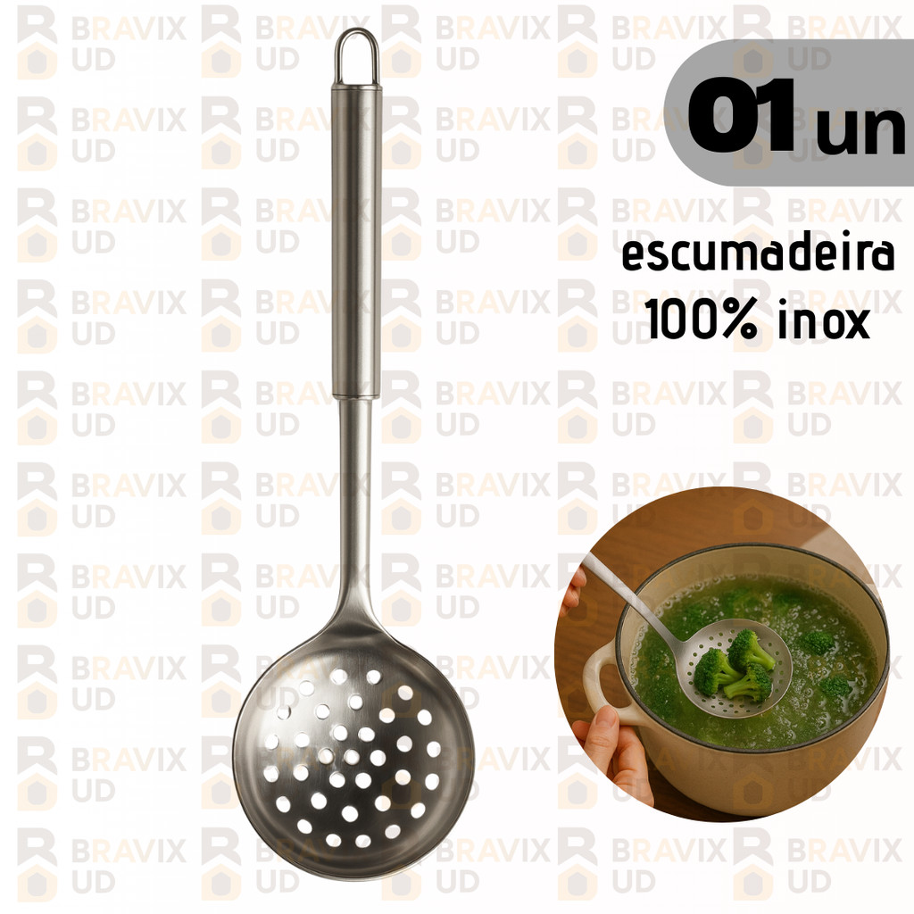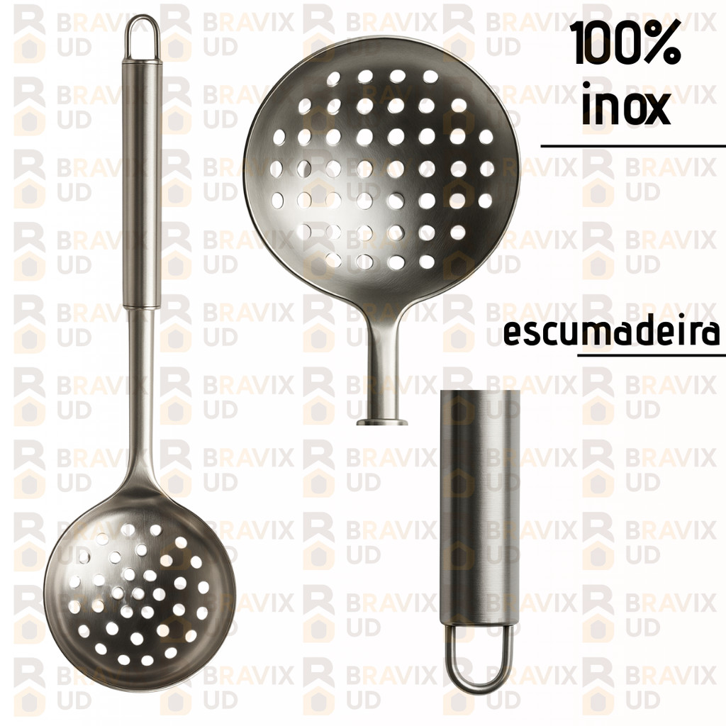 Kit Escumadeira para Fritura Batata Frita Pasteis Inox Cozinha Utensilios Inox