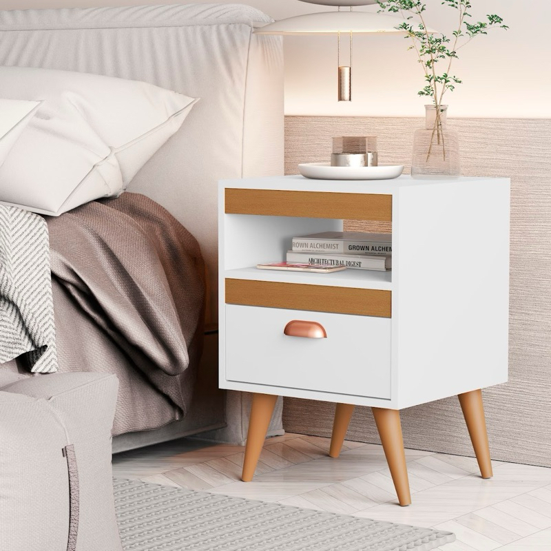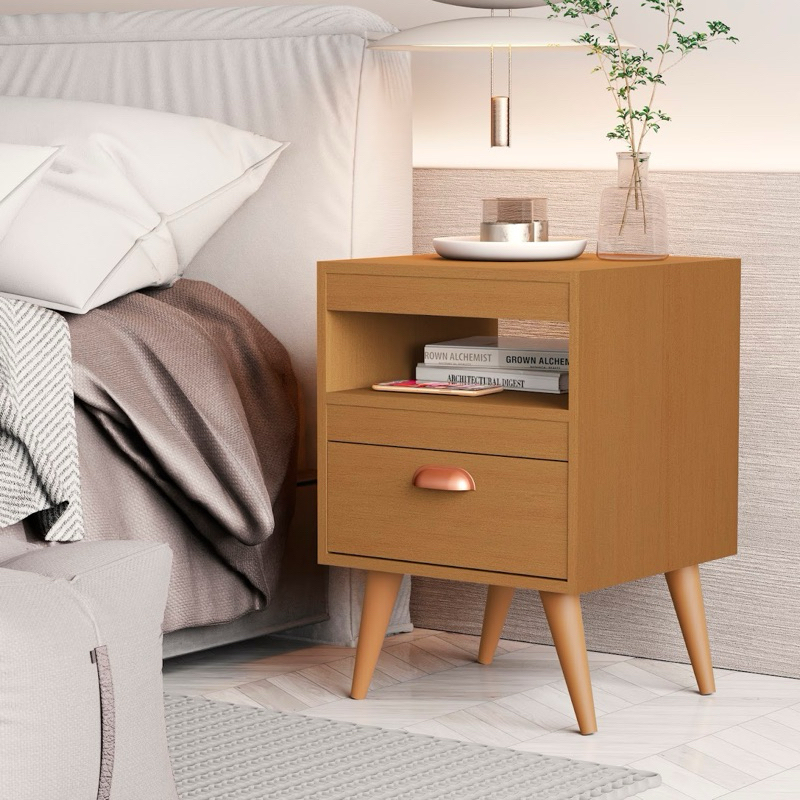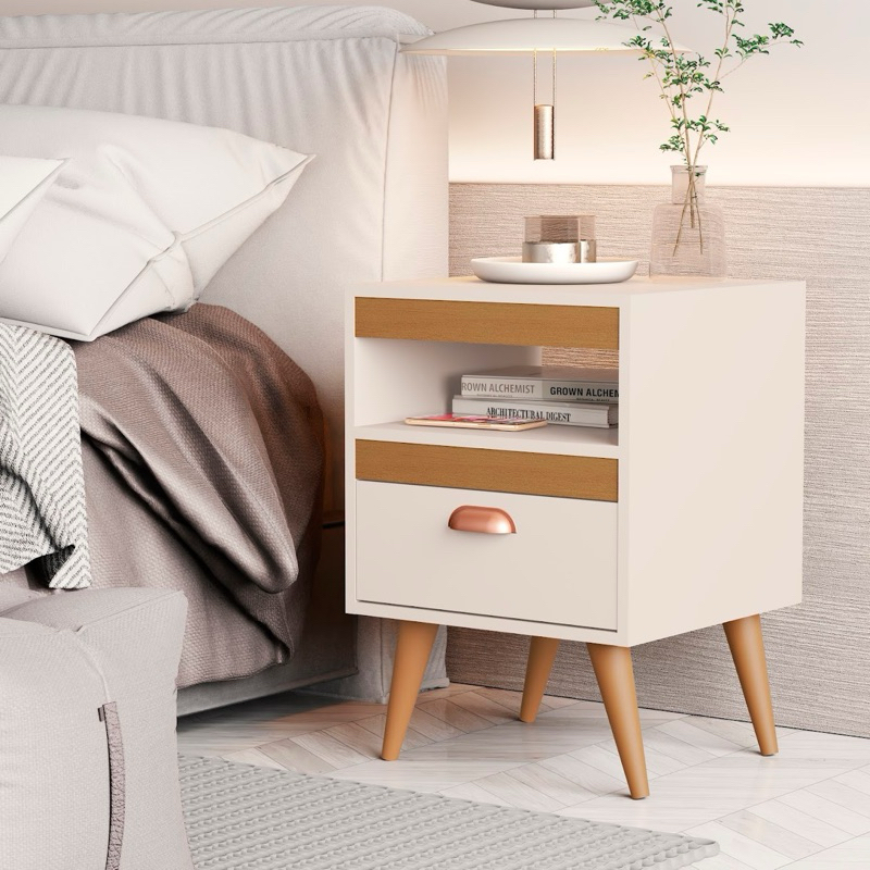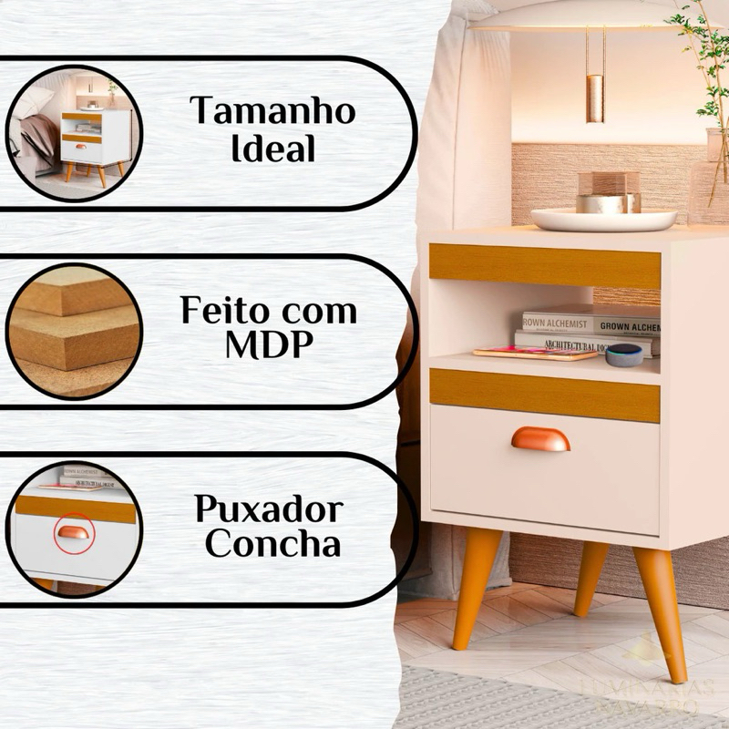 * PROMOCÃO* Kit 2 Mesas De Cabeceiras Para Quarto Retro Com Gaveta e Pés Criado Mesinha de Canto