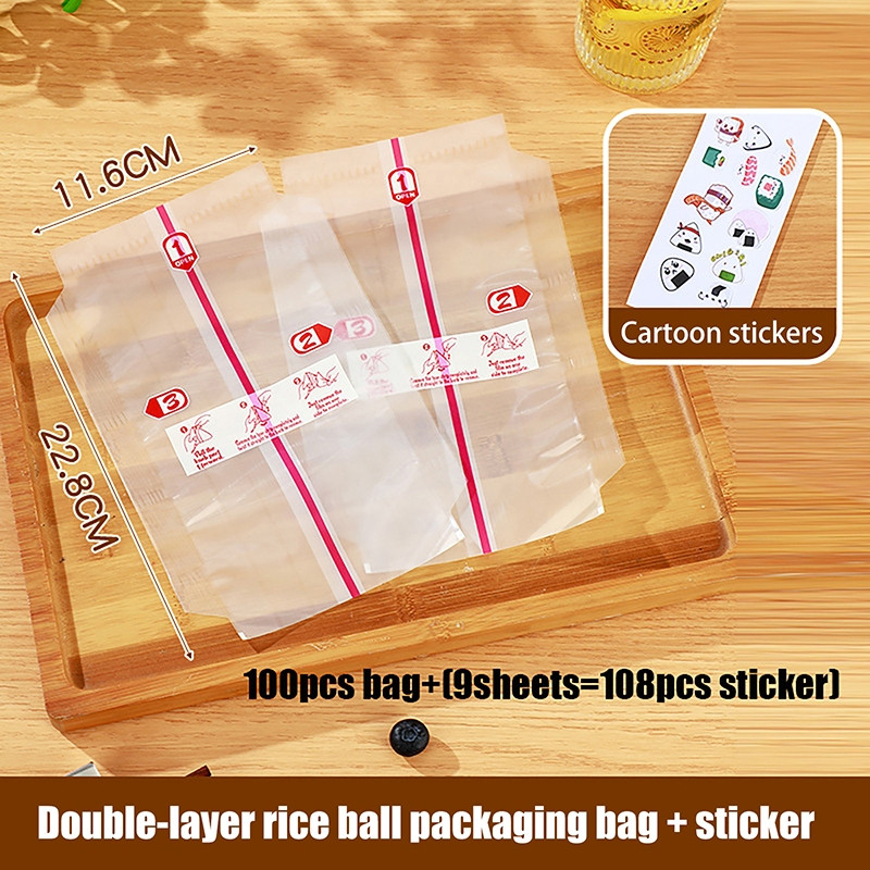 100 Unidades De Camada Dupla Triângulo Saco De Embalagem De Bola De Arroz Algas Marinhas Onigiri Sushi Para F