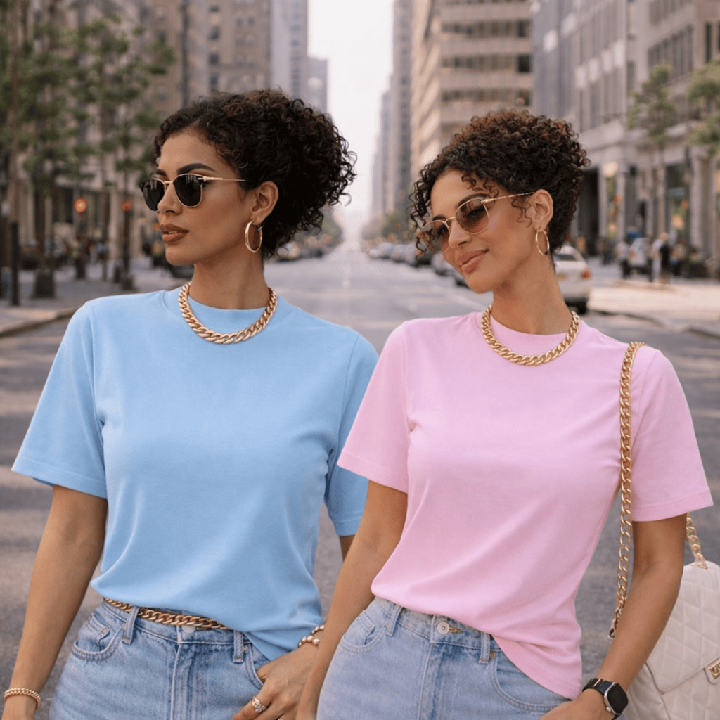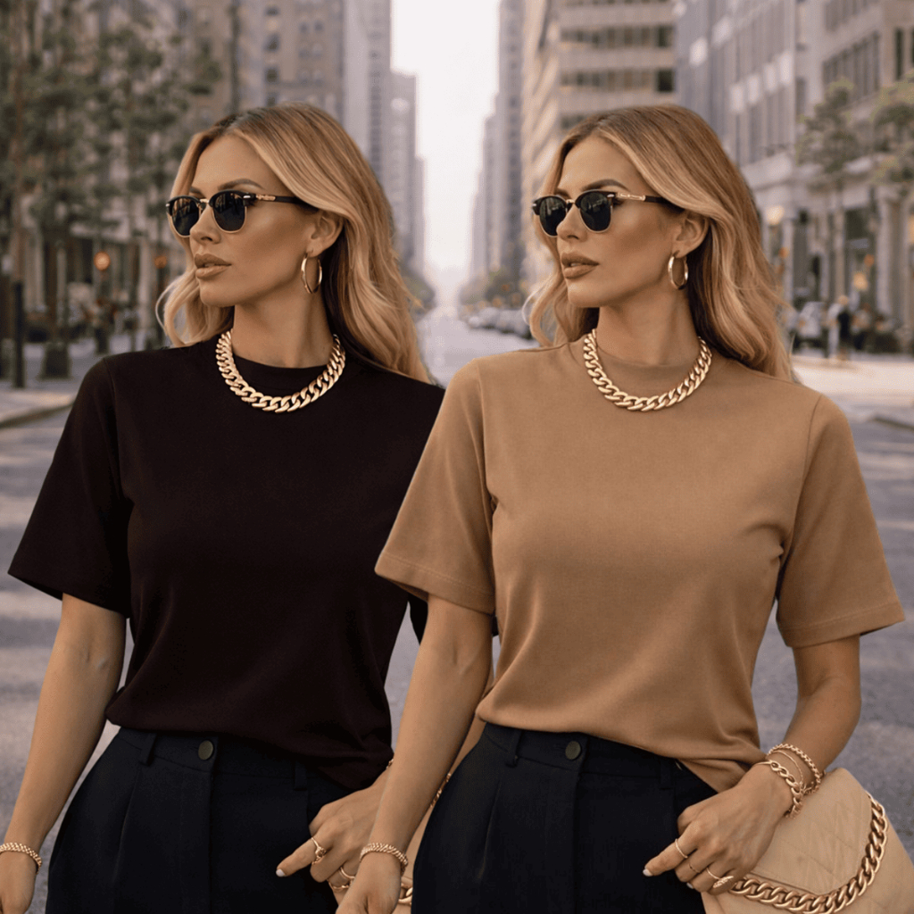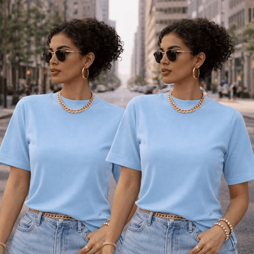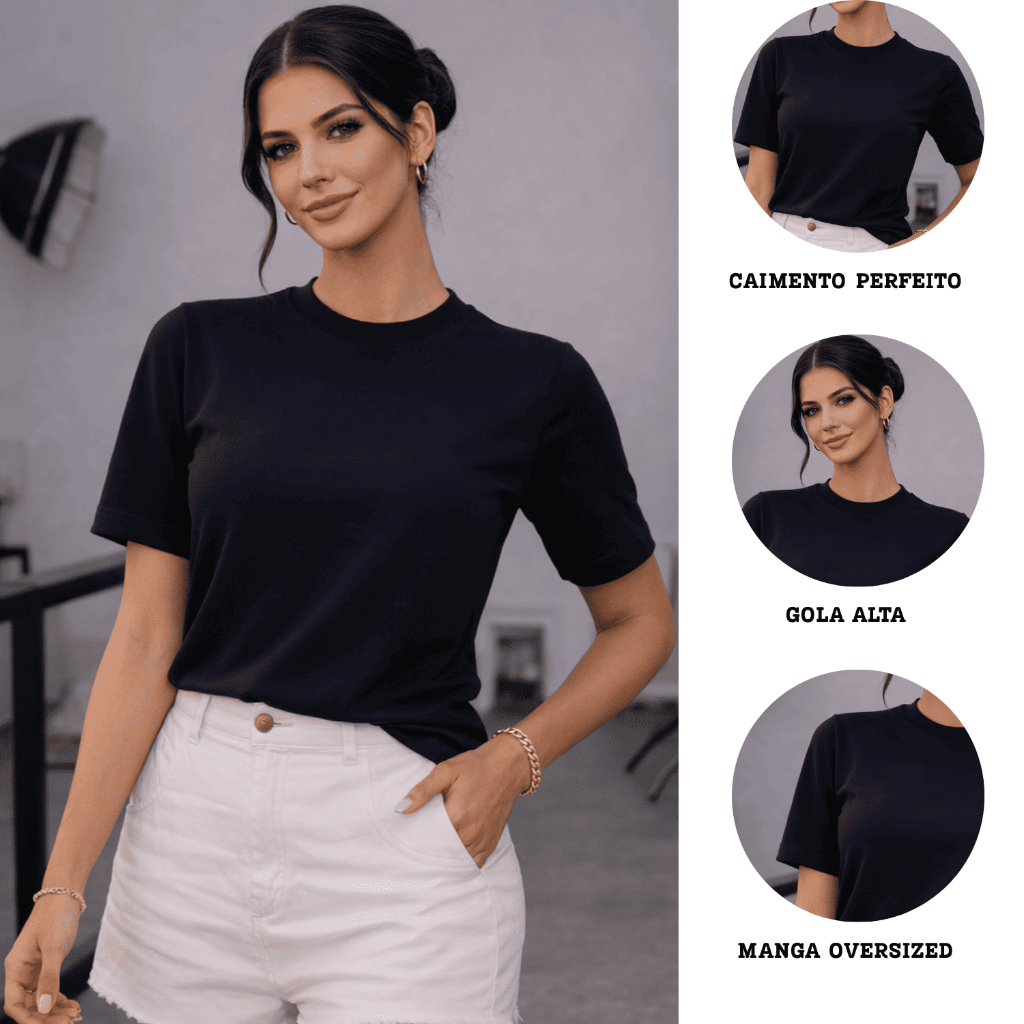 Kit 2 ou 1 Camisetas Oversized Feminina Básica Gola Alta 100% Algodão Premium Dia a Dia