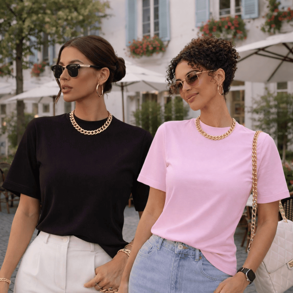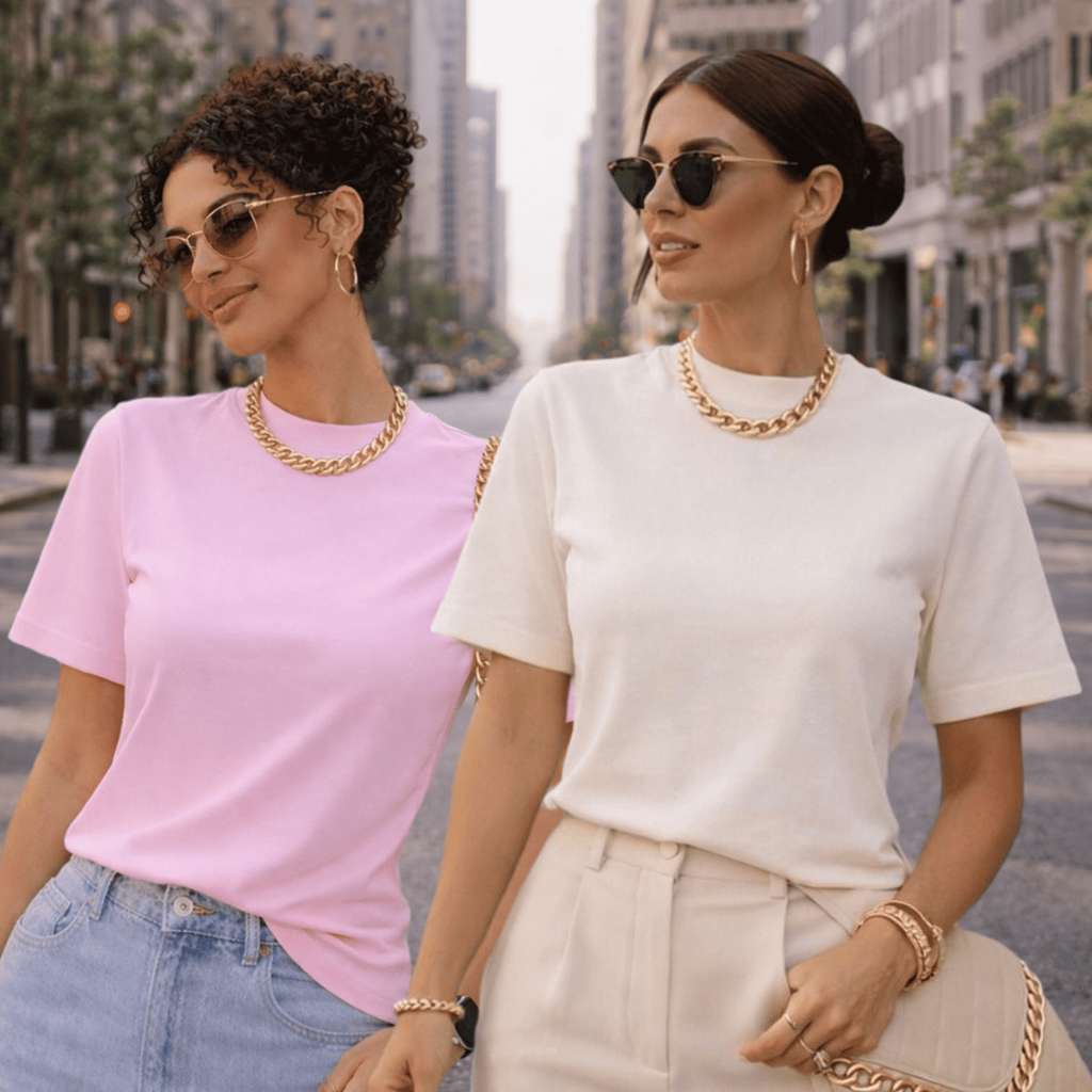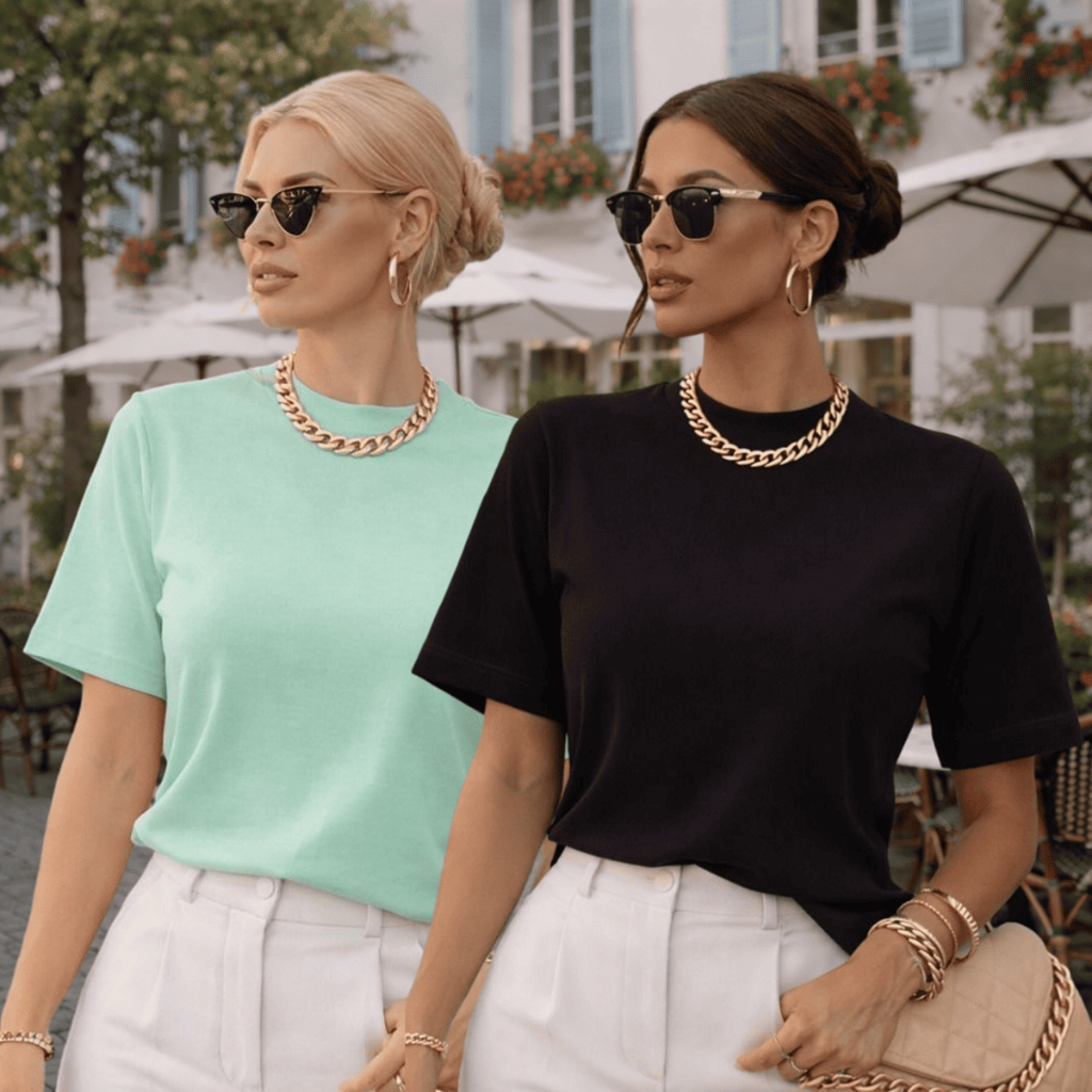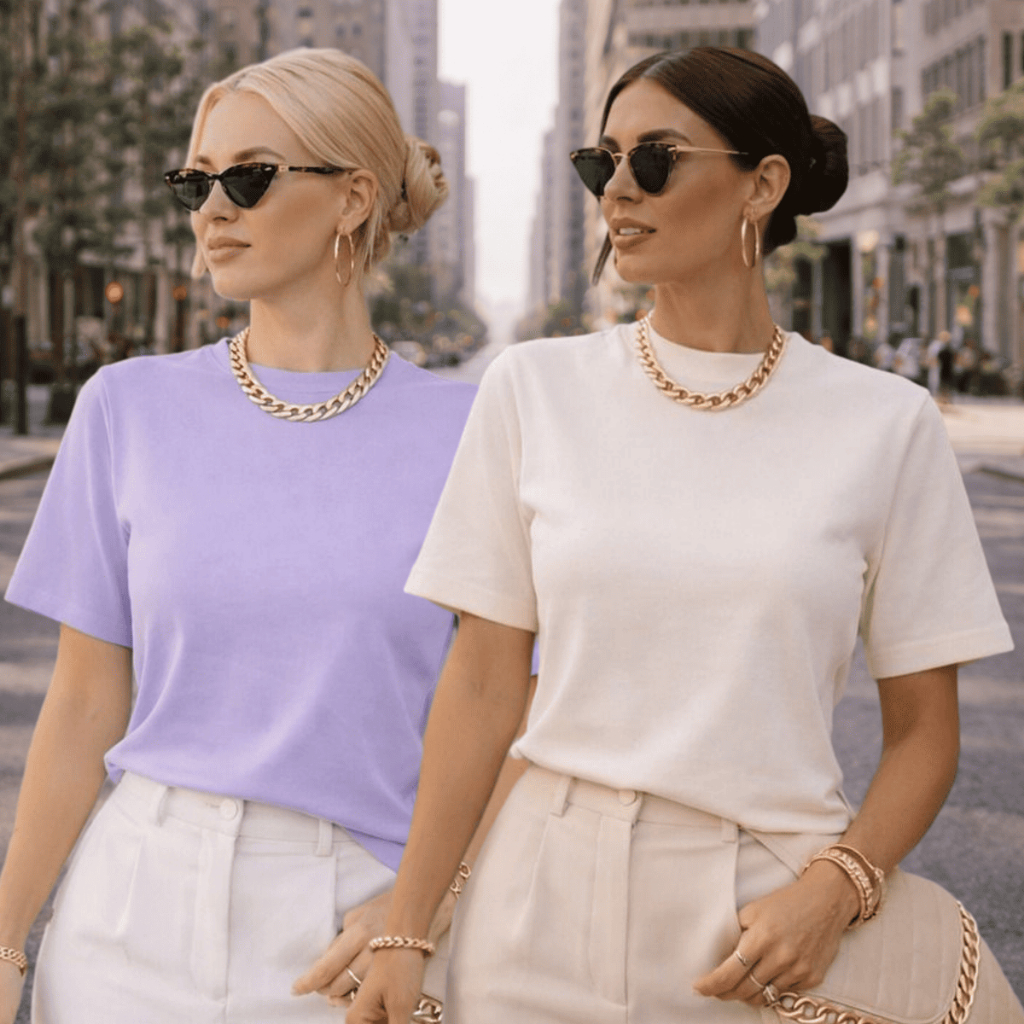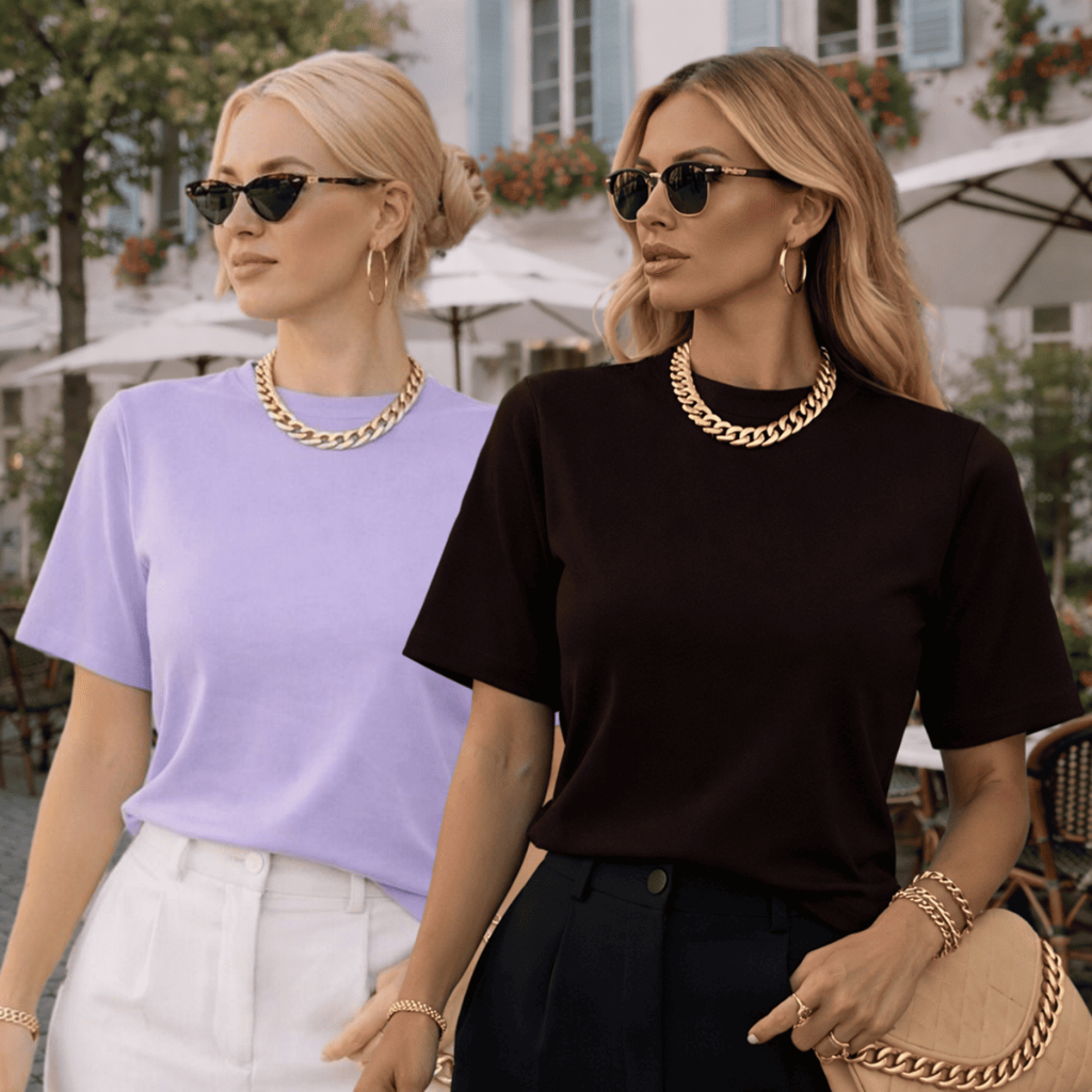 Kit 2 ou 1 Camisetas Oversized Feminina Básica Gola Alta 100% Algodão Premium Dia a Dia