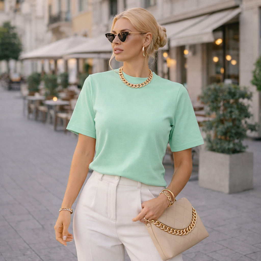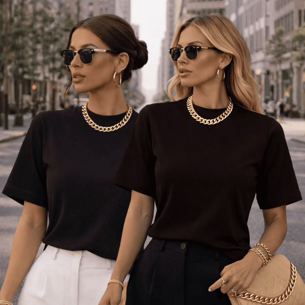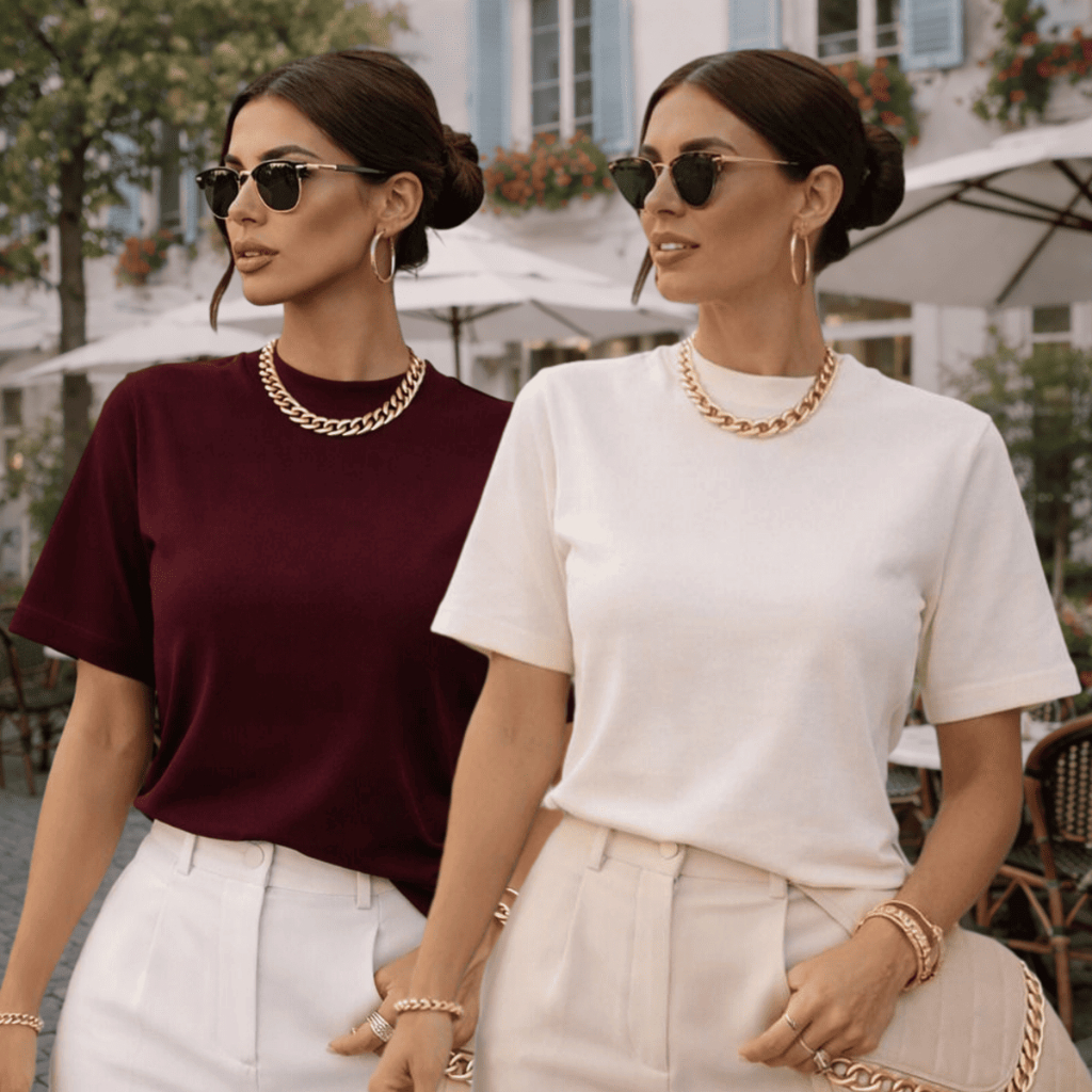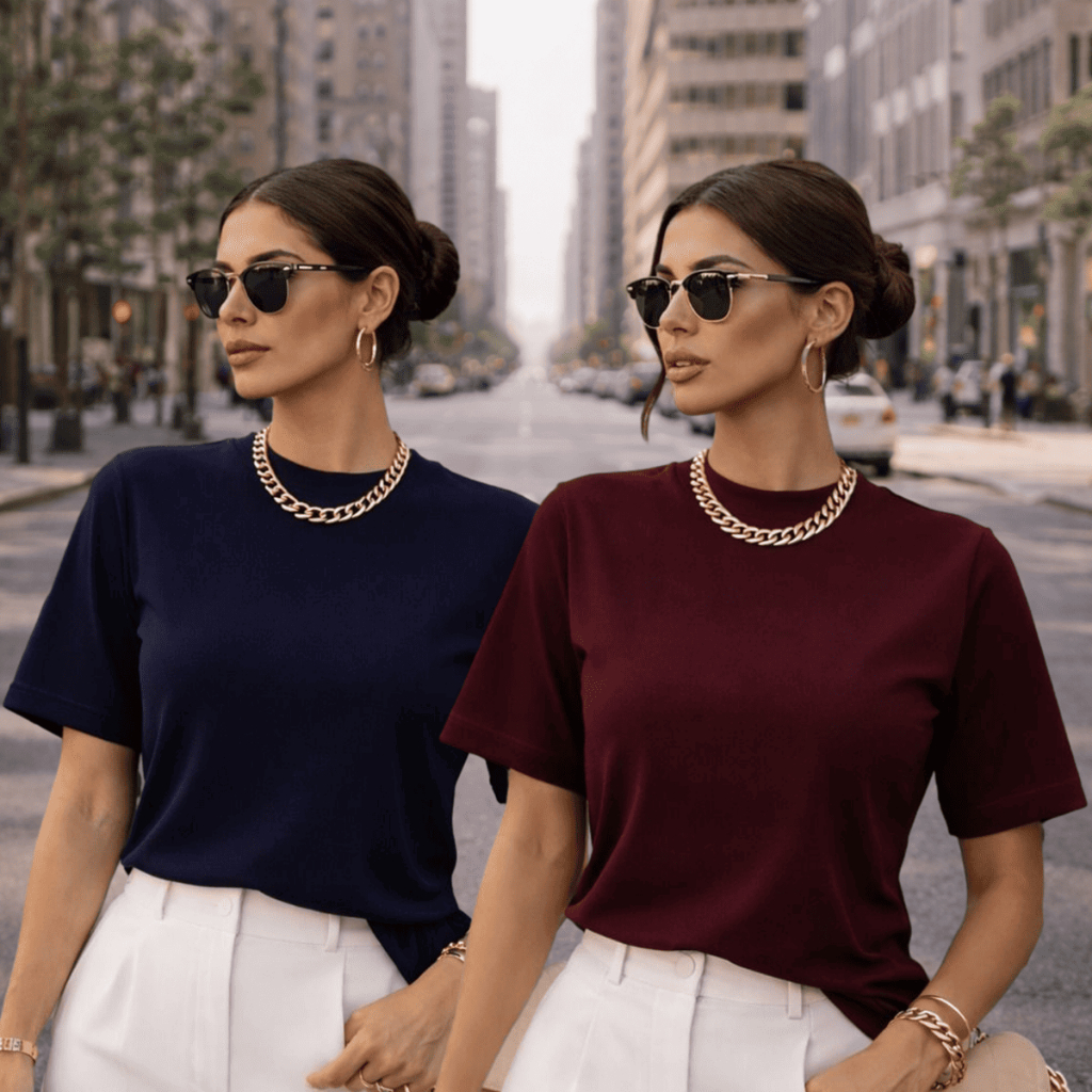 Kit 2 ou 1 Camisetas Oversized Feminina Básica Gola Alta 100% Algodão Premium Dia a Dia
