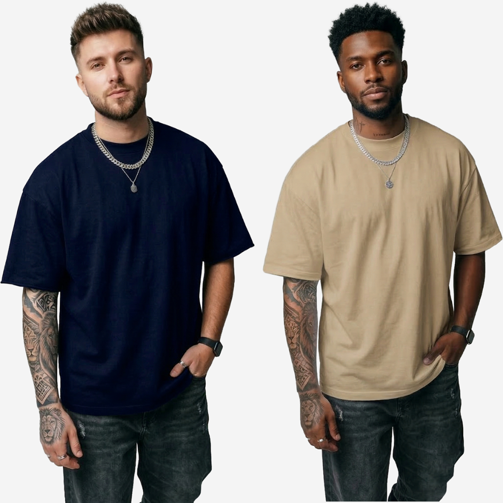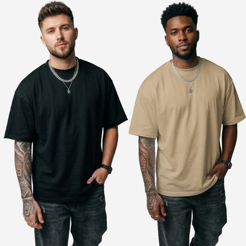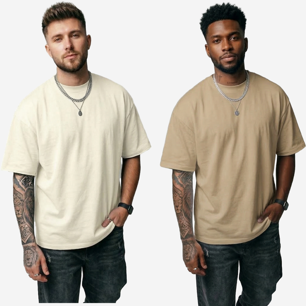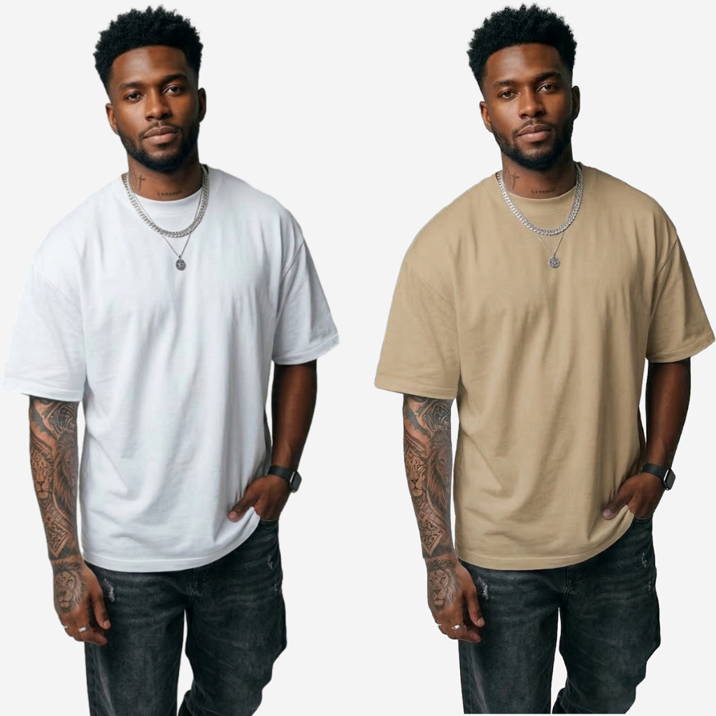 KIT 2 OU 1 Camiseta Oversized Masculina 100% Algodão Gola Alta Básica Casual Dia a Dia
