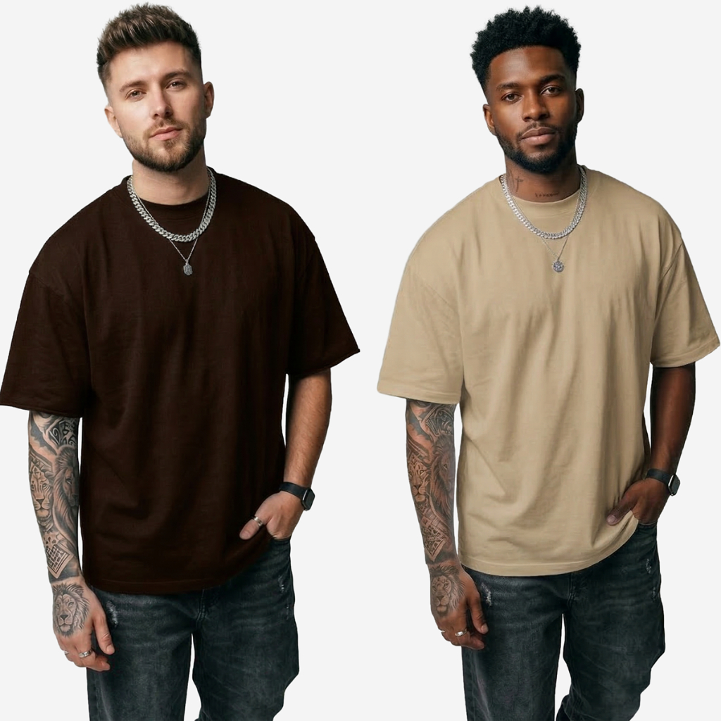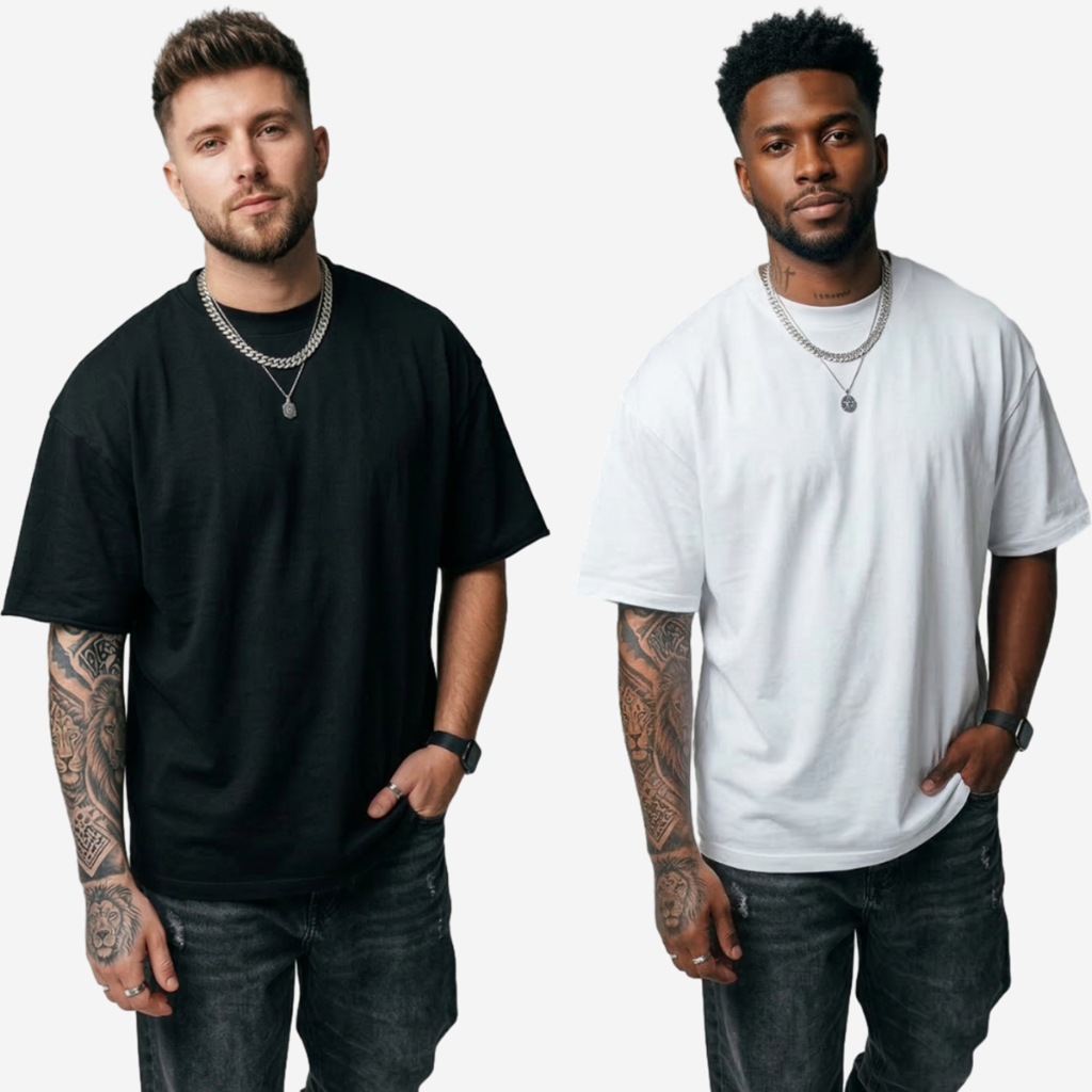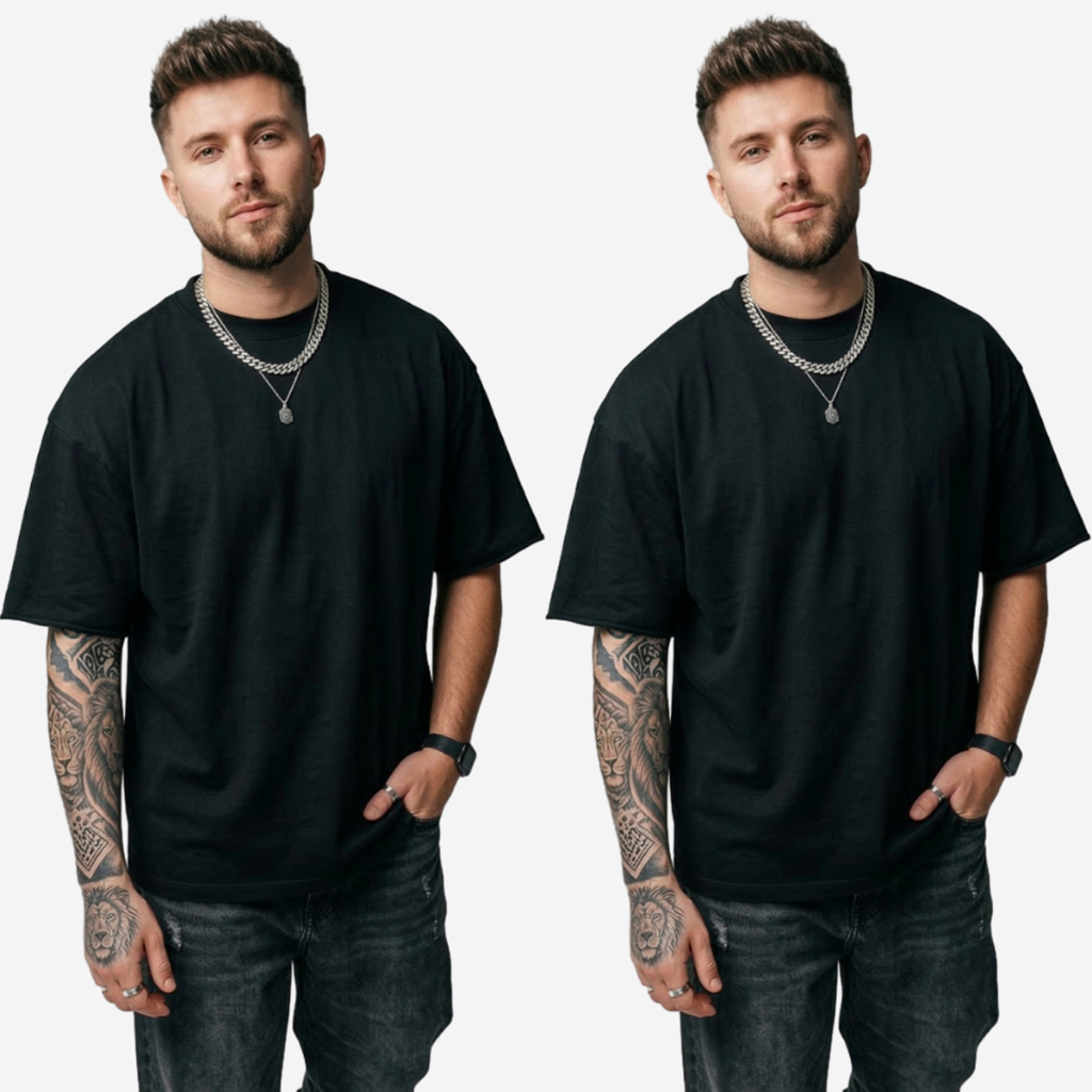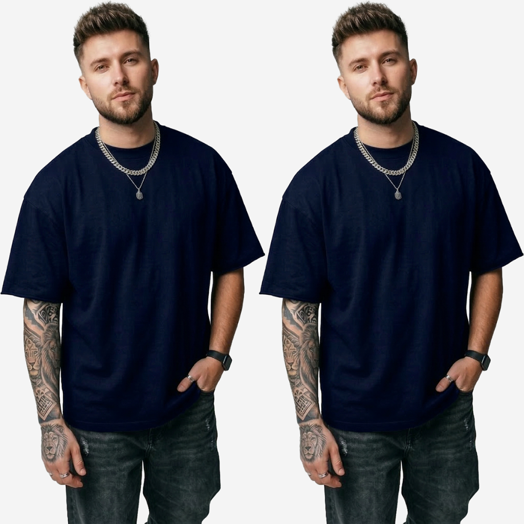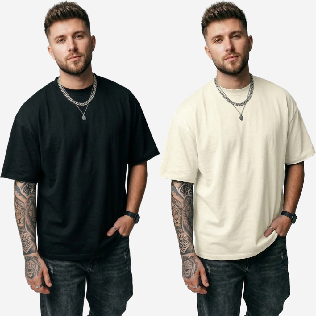 KIT 2 OU 1 Camiseta Oversized Masculina 100% Algodão Gola Alta Básica Casual Dia a Dia