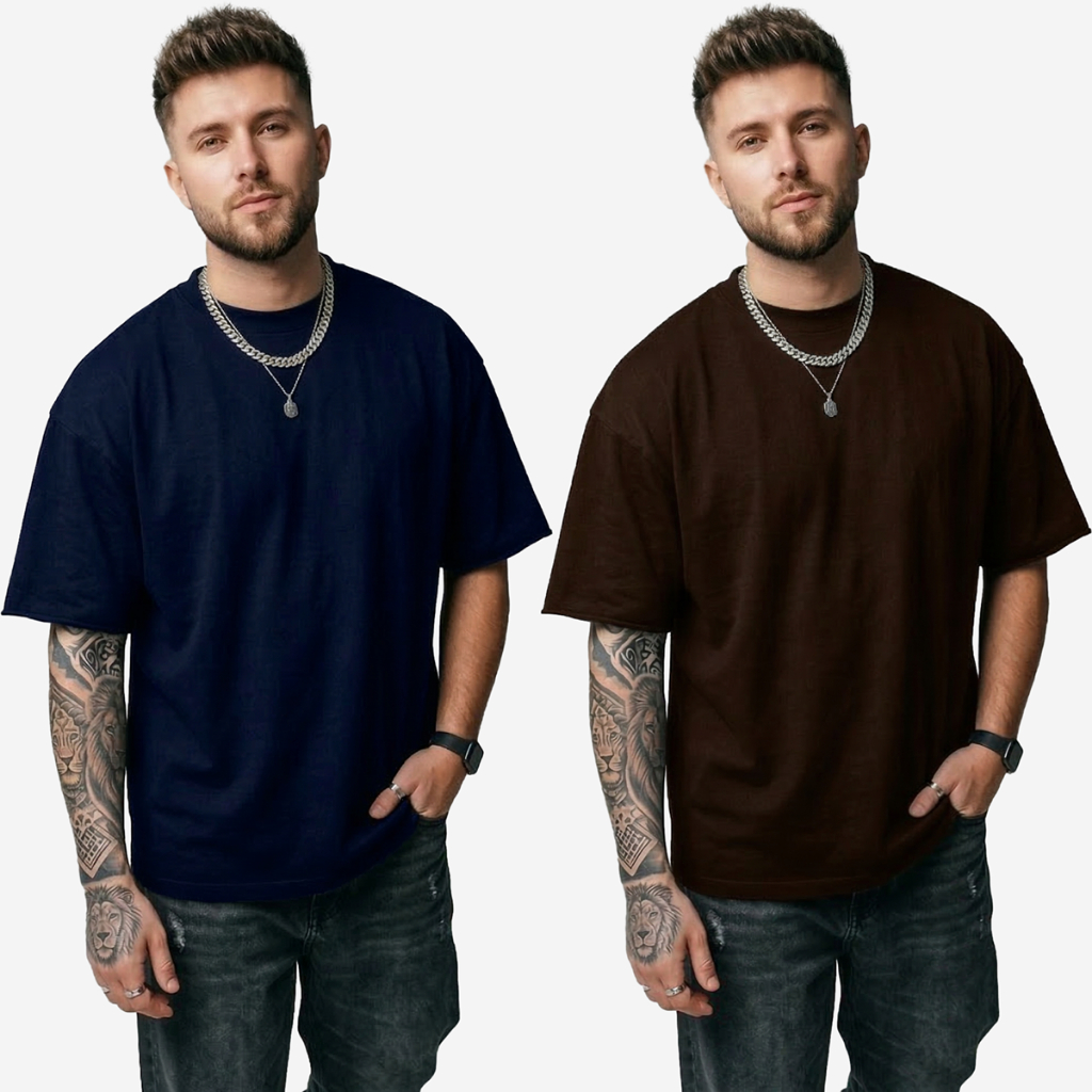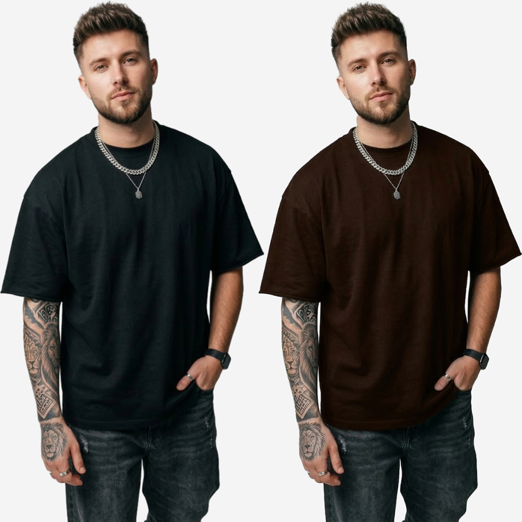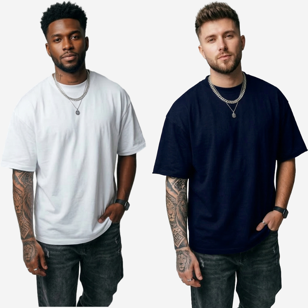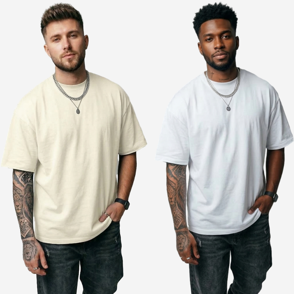 KIT 2 OU 1 Camiseta Oversized Masculina 100% Algodão Gola Alta Básica Casual Dia a Dia