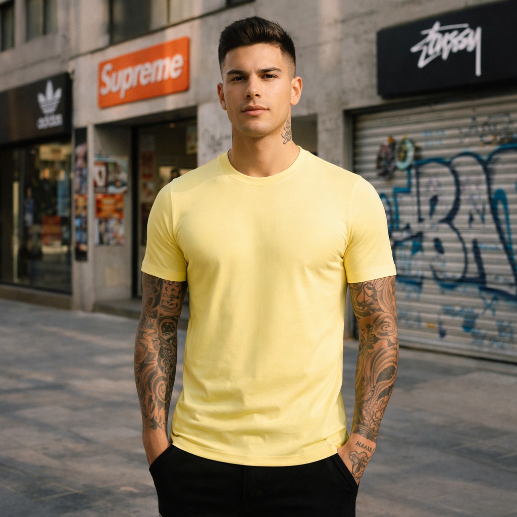 Camiseta Masculina Lisa 100% Algodão Premium Slim Básica Confortável Dia a Dia