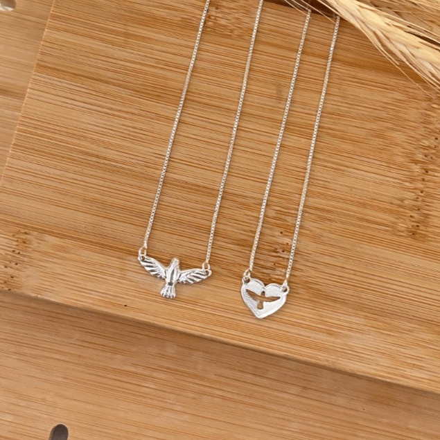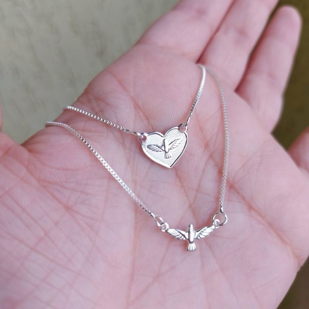 Escapulário Espirito Santo Pássaro a Prata 925/Antialérgico
