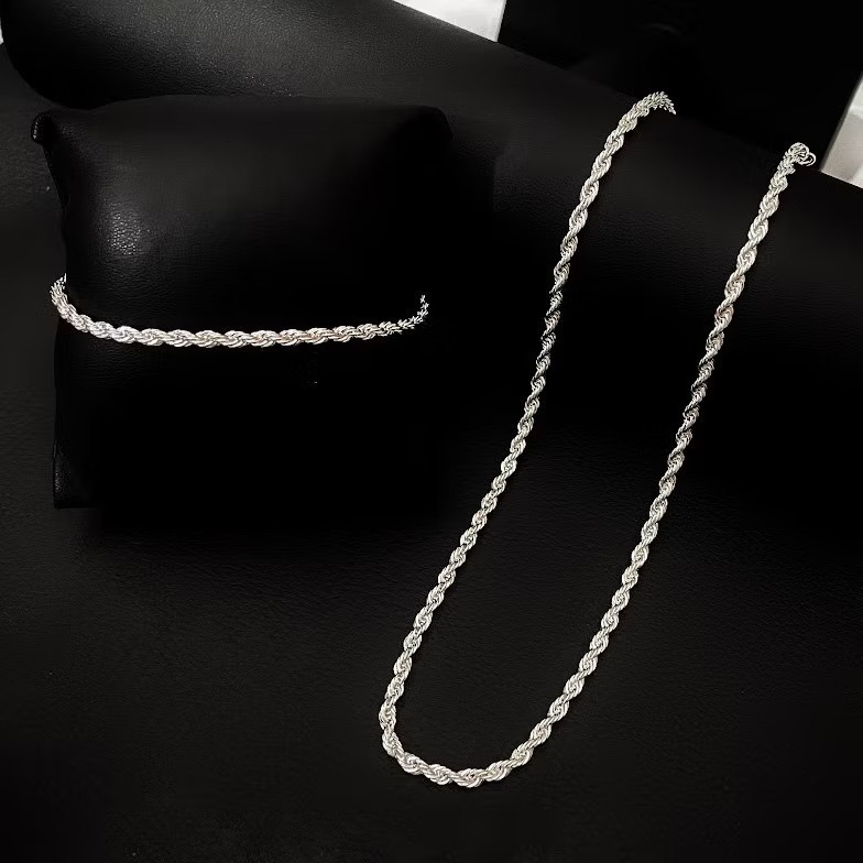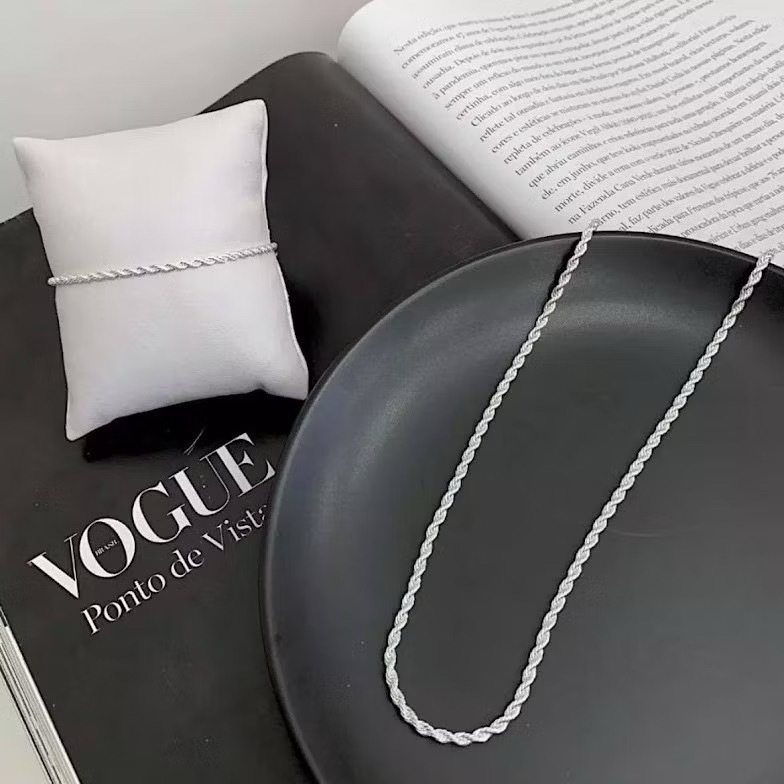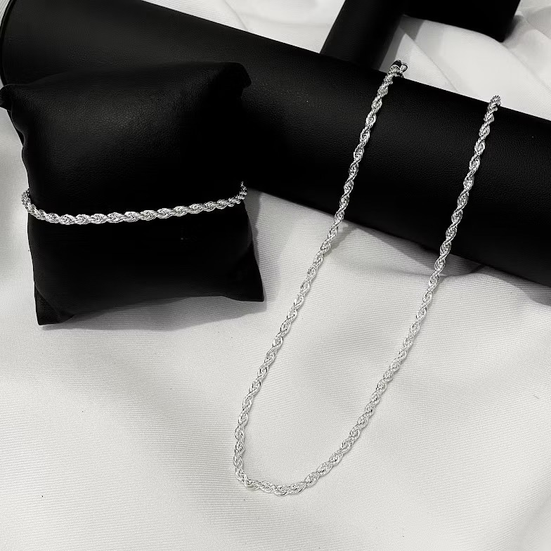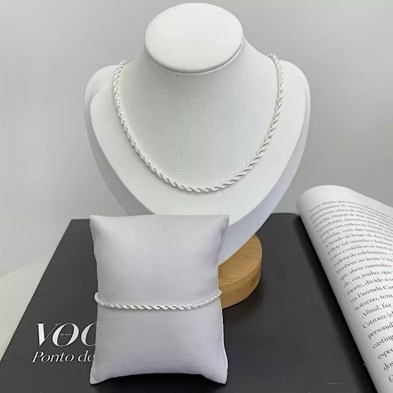 Kit Colar e Pulseira Cordão Baiano torcido a prata 925 semi joia