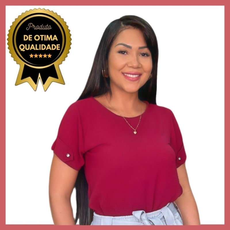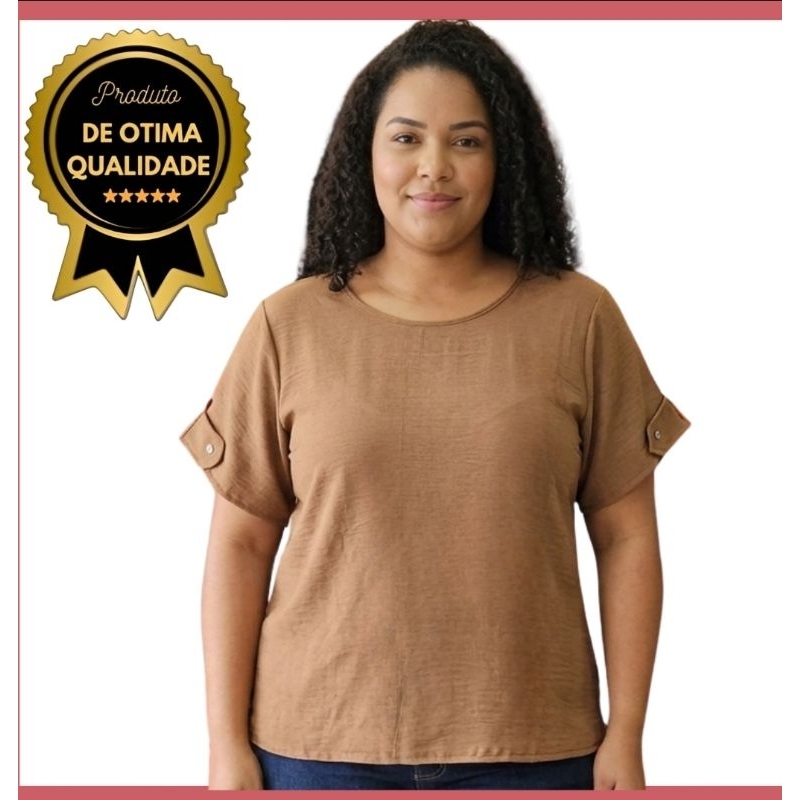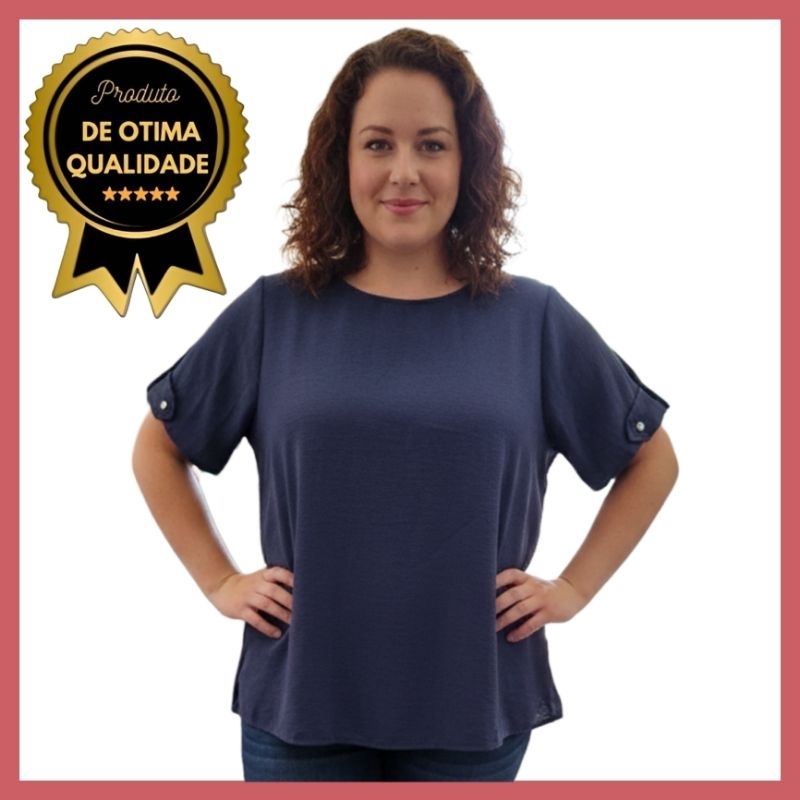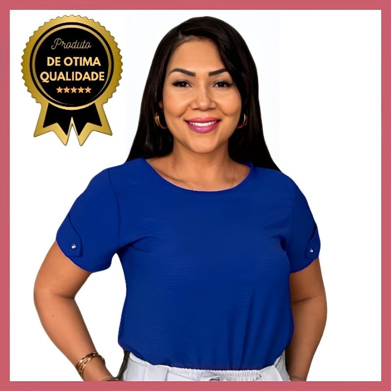 Blusa Feminina Estilosa Tendência Duna Manga Curta Detalhe Botão na Manga Não Amassa, Fresca, Confortável, Versátil