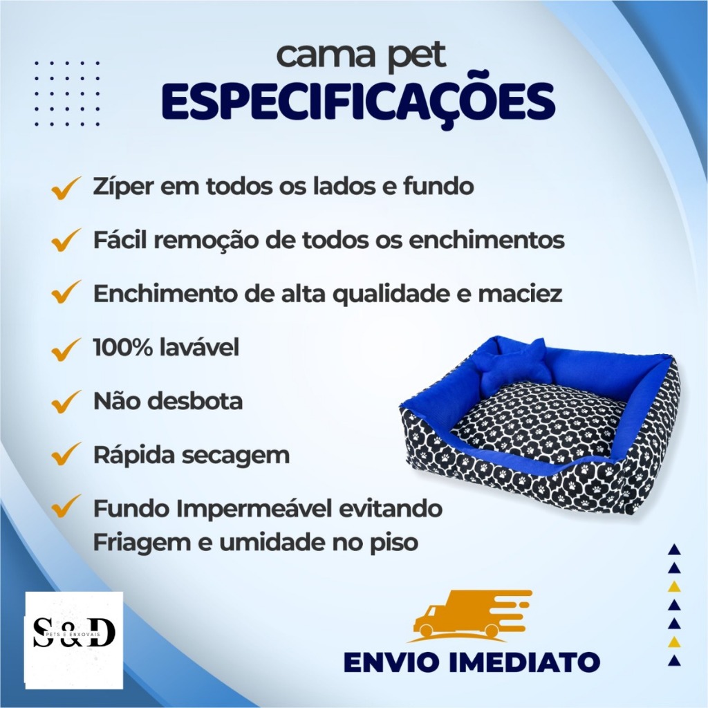 Cama Pet Luxo Caminha de Cachorro Médio Fundo Impermeável 100% Algodão + Ossinho
