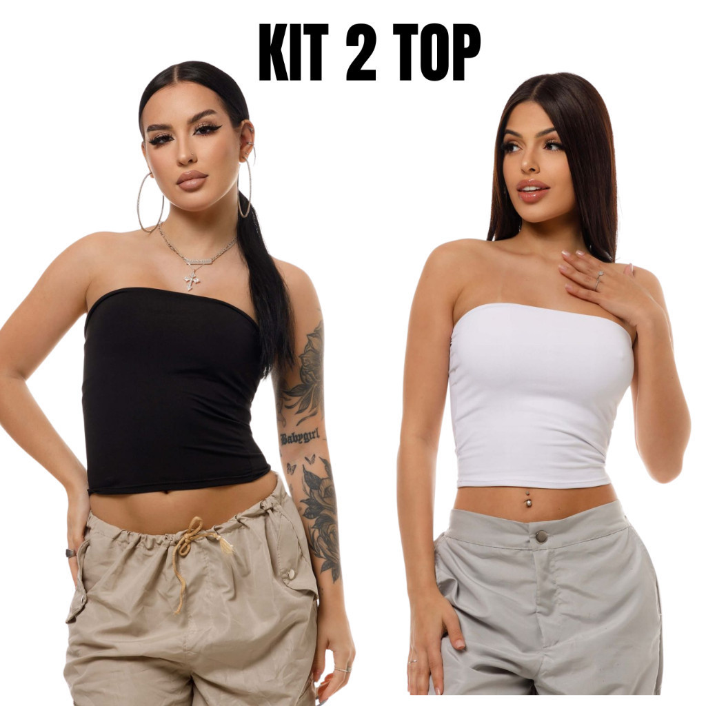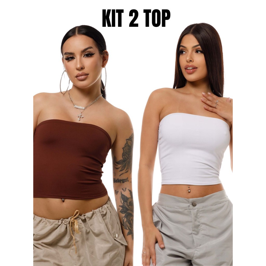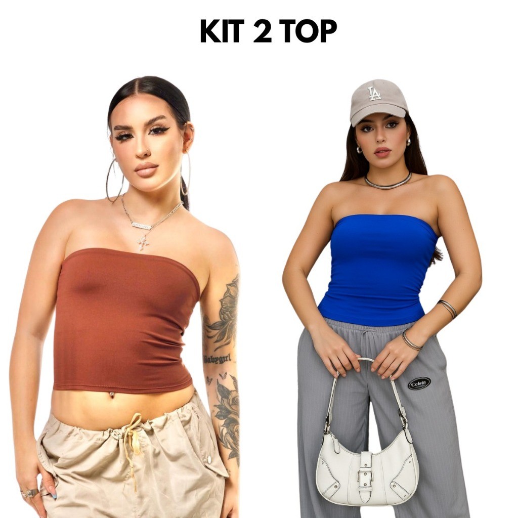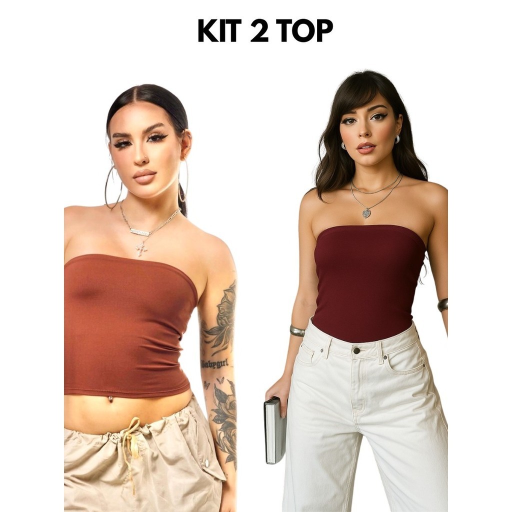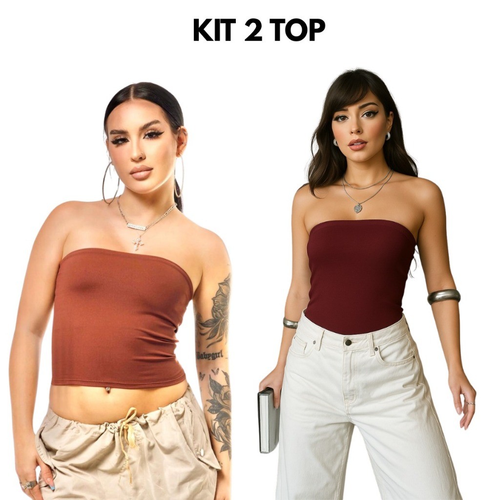Kit 2 Tube Top Feminino Blusa Faixa Tomara Que Caia Suplex Forro Duplo