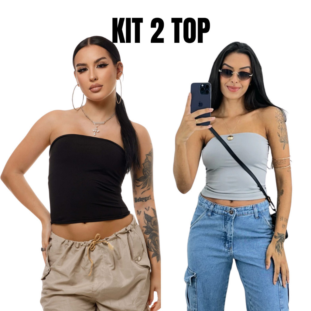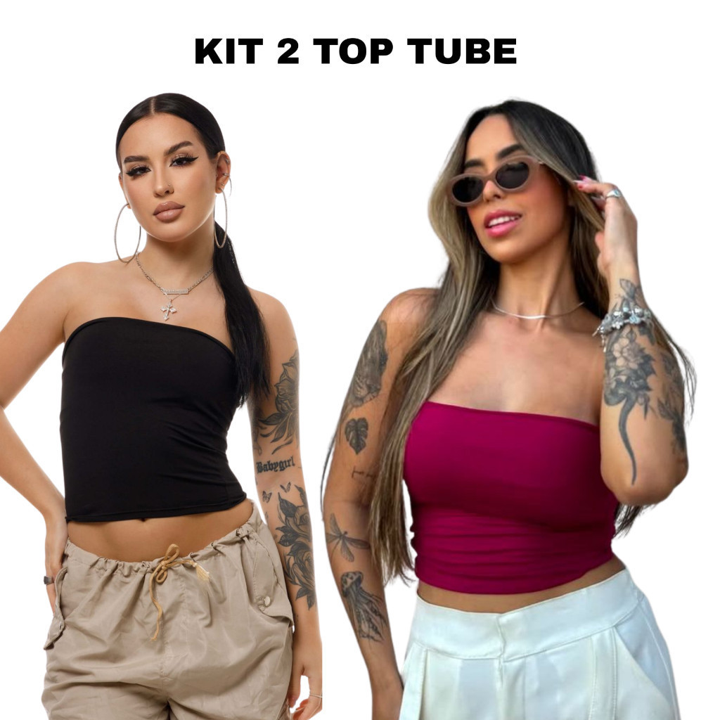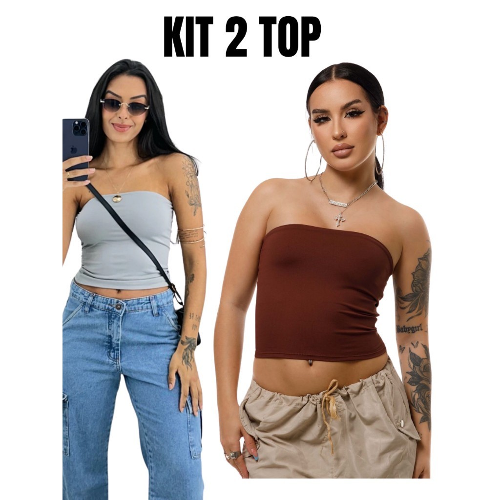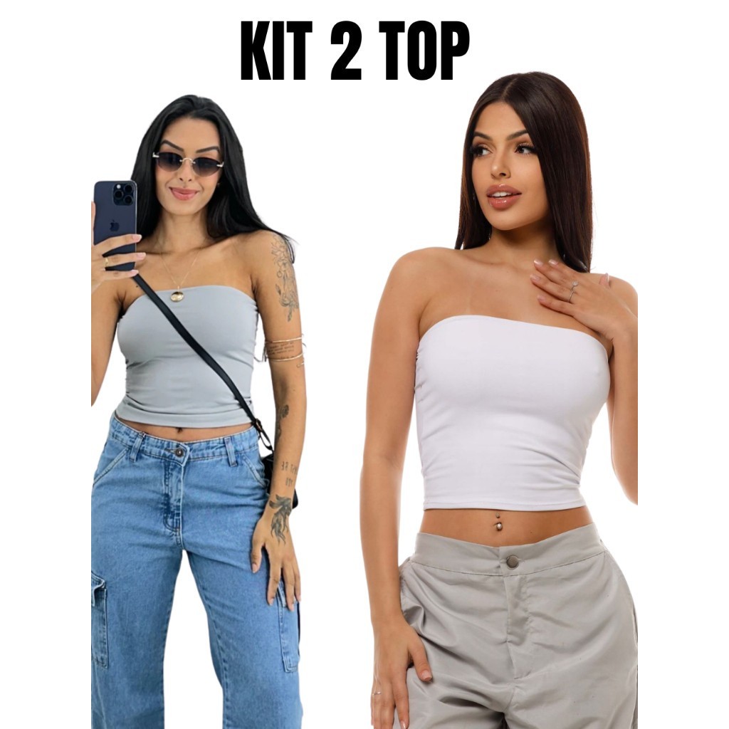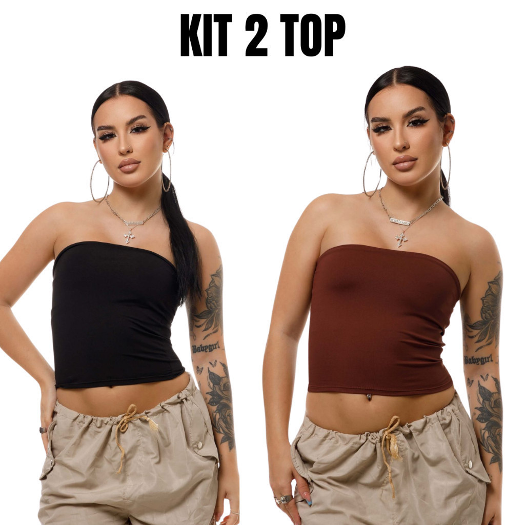 Kit 2 Tube Top Feminino Blusa Faixa Tomara Que Caia Suplex Forro Duplo