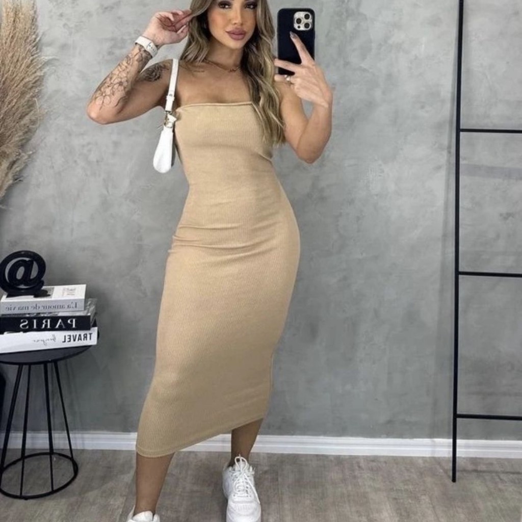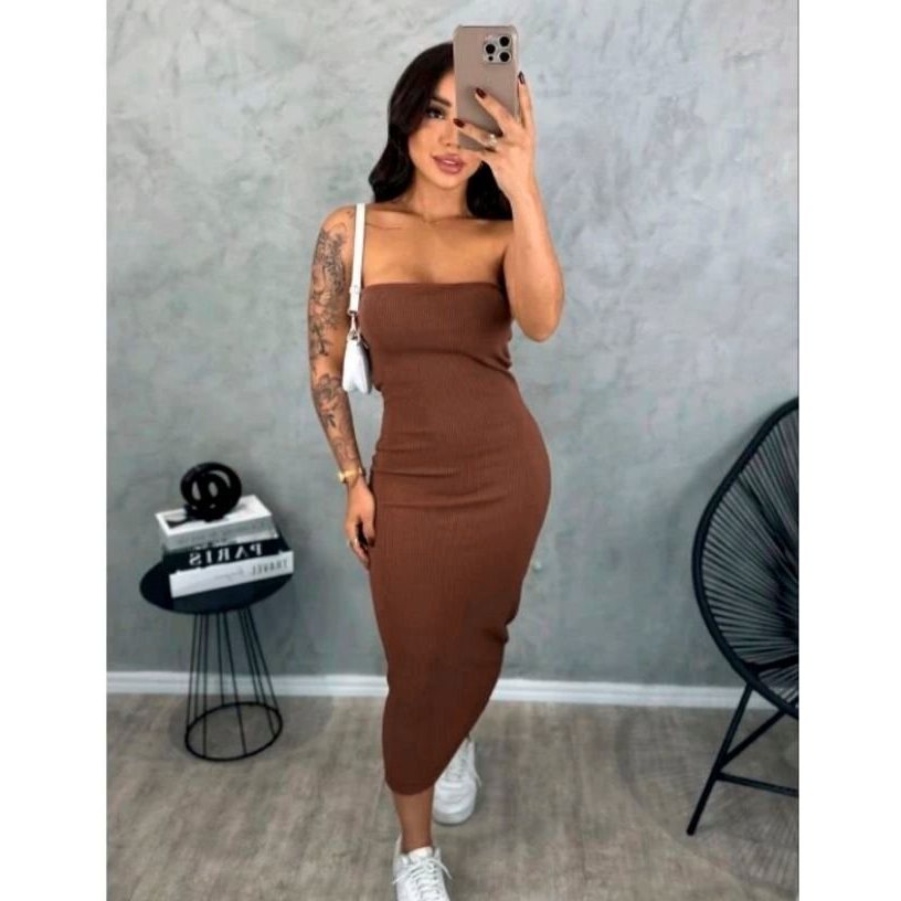 Vestido Midi Tomara que Caia Canelado - Elegância e Conforto em um Único Vestido! TECIDO ANARRUGA!