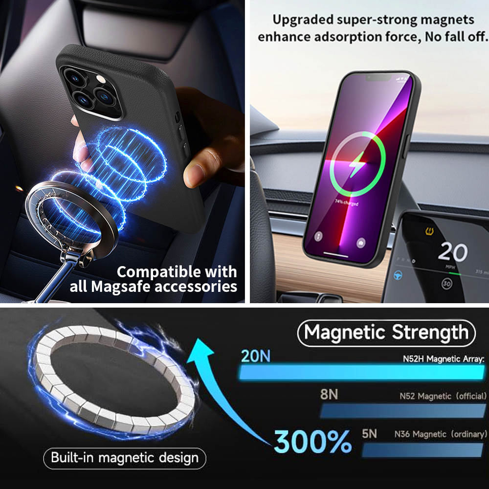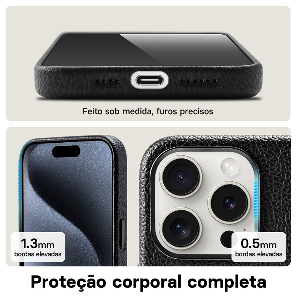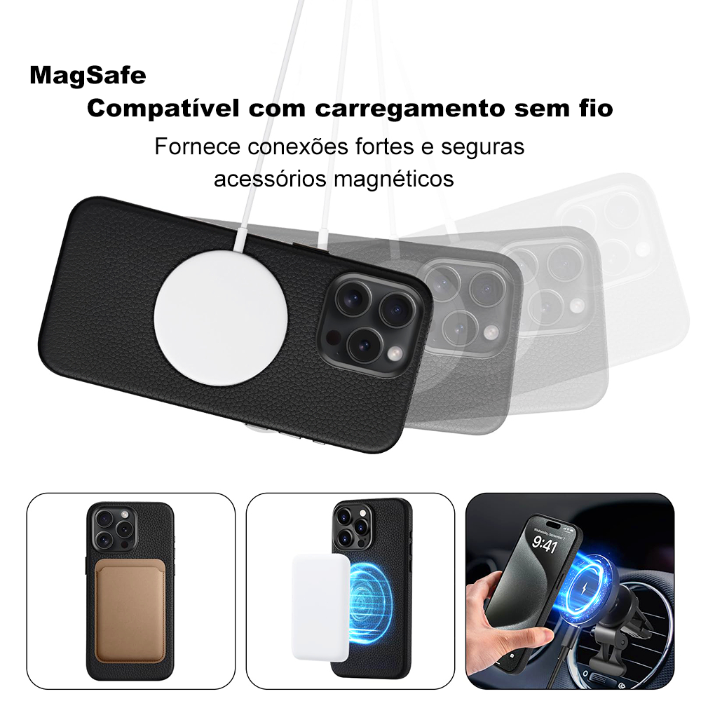 Capa Magsafe de Couro para iPhone 13/14/15 Pro Max com Adsorção Magnética , Capinha de PU Antichoque
