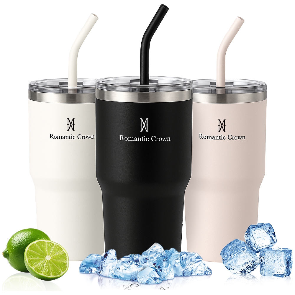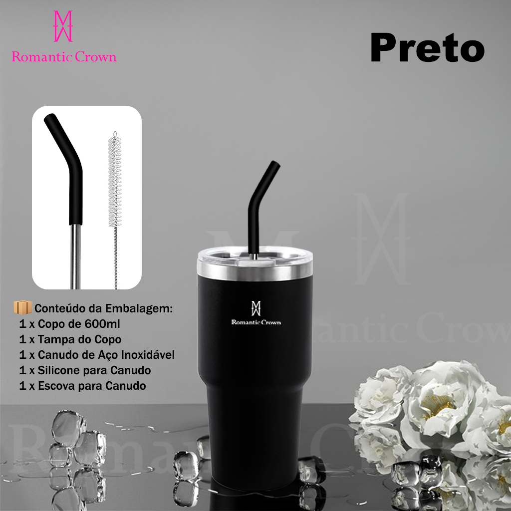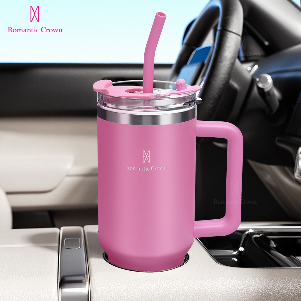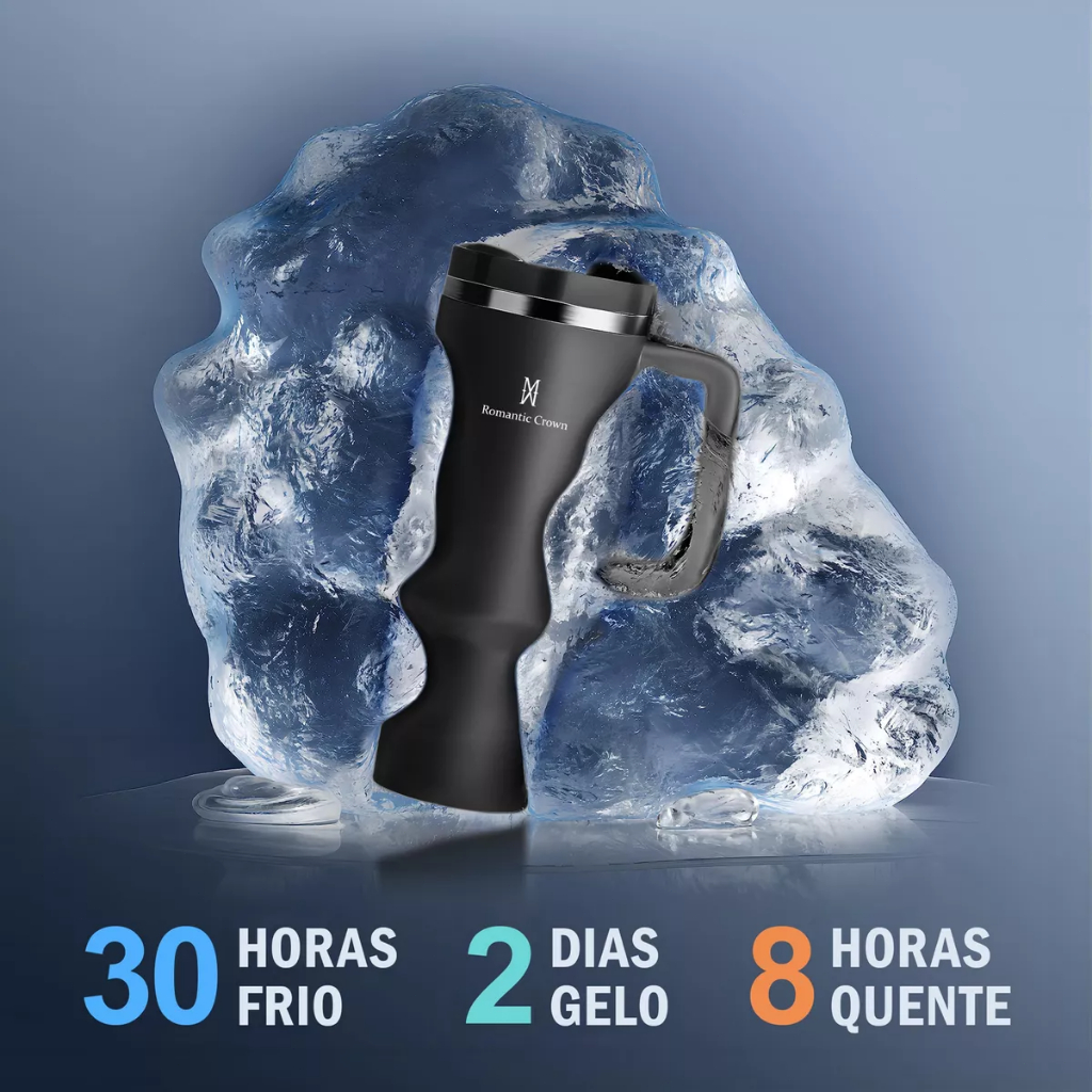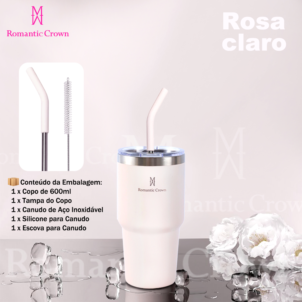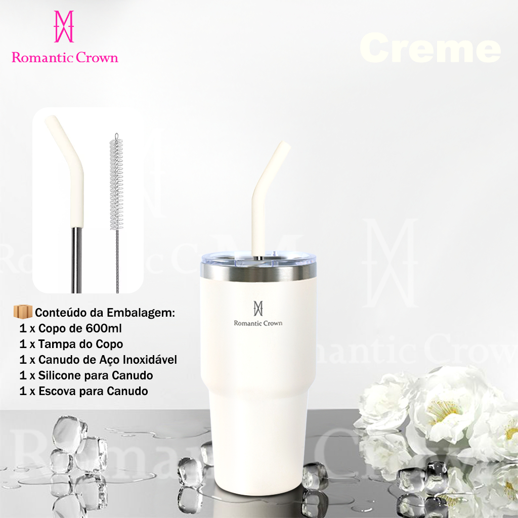 ROMANTIC CROWN Copo Térmico Inox Portátil 1200ml/600ml/1.2L Garrafa Térmica Inoxidável com Tampa e Canudo