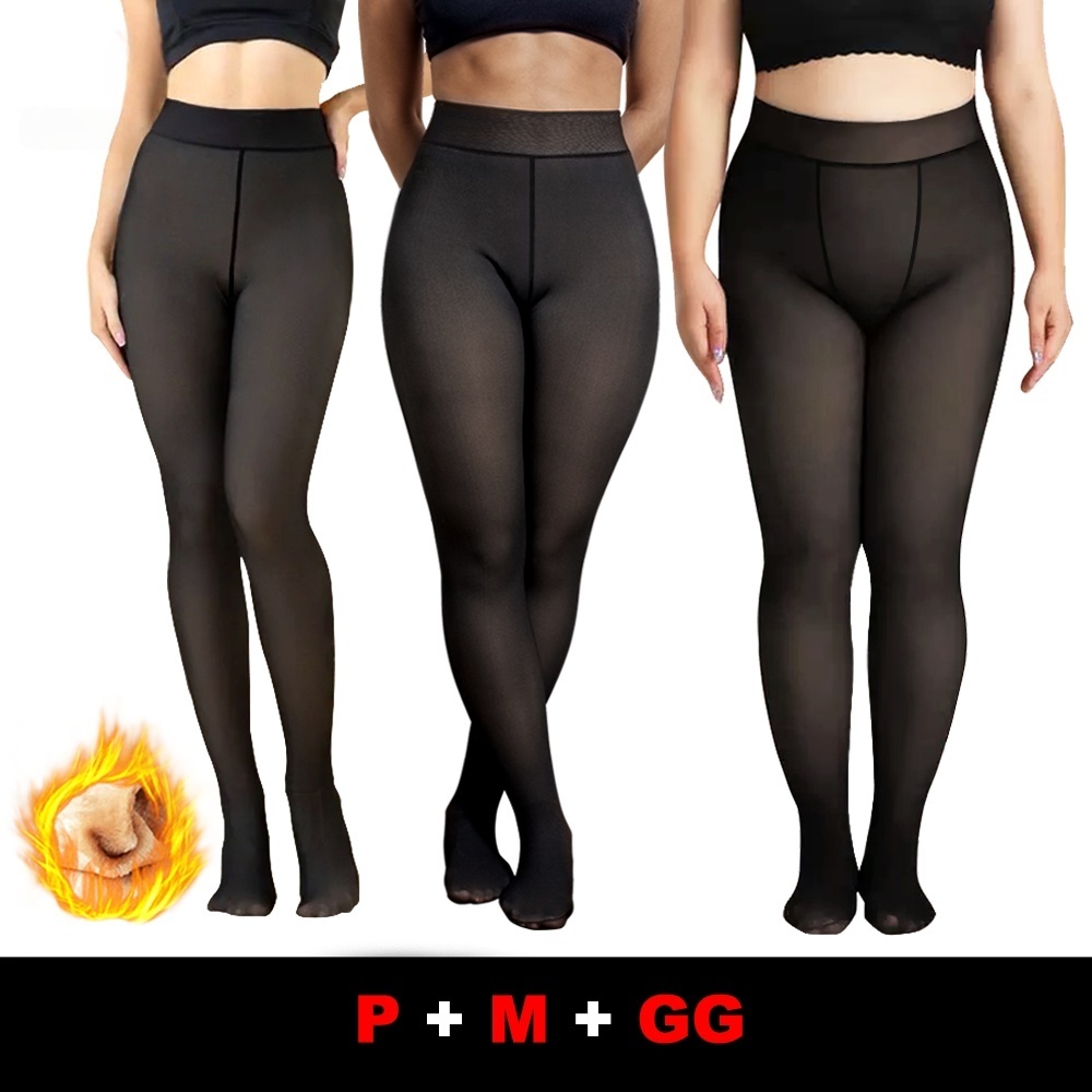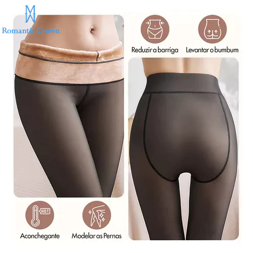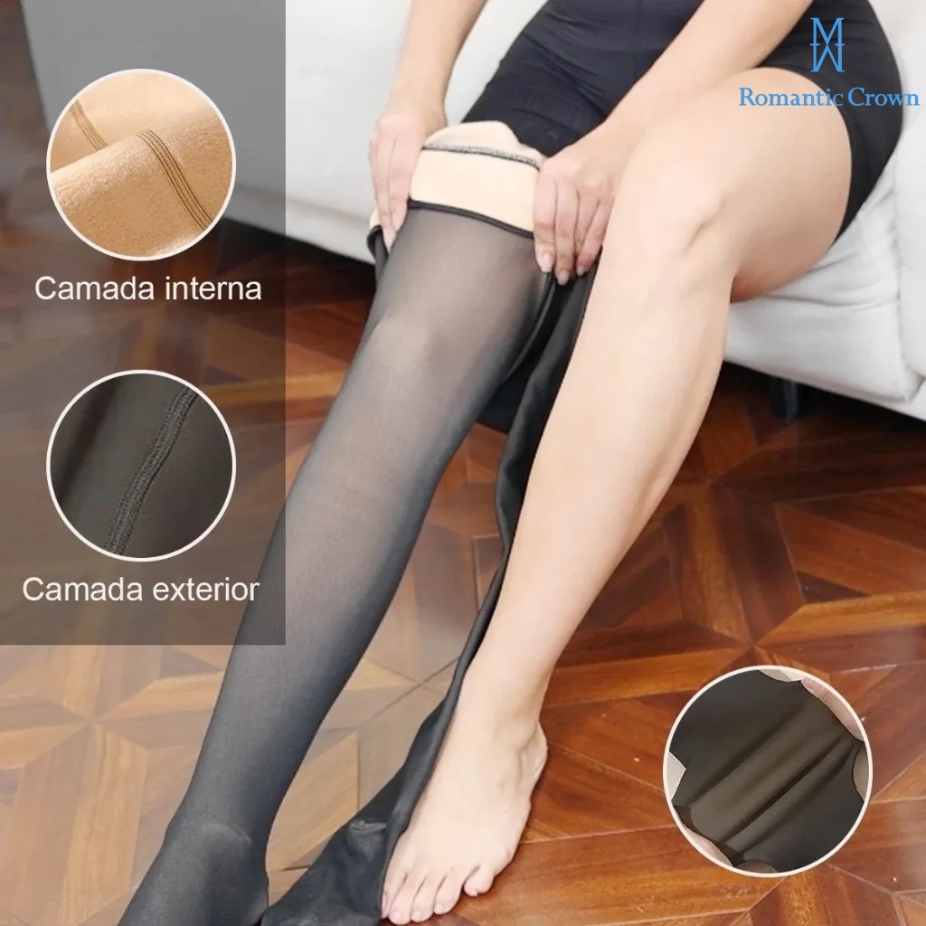 Kit 3 Meia-Calça Térmica Forrada Peluciada Translúcida De Lã Quente Feminina Para Inverno