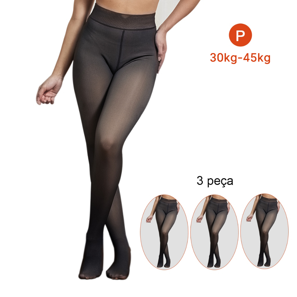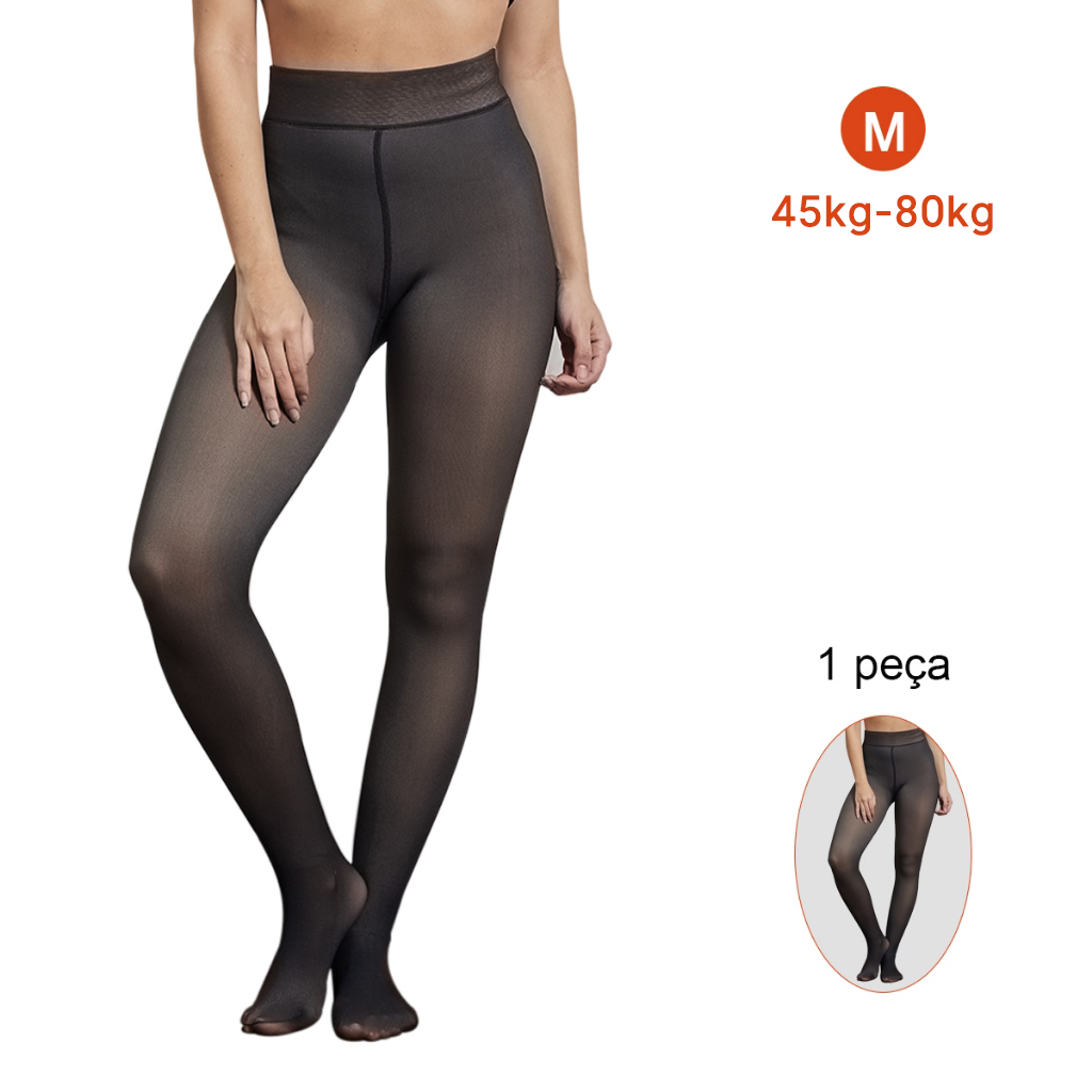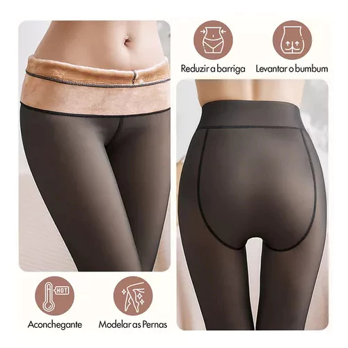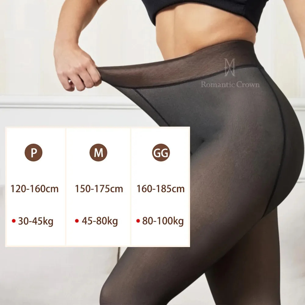 ROMANTIC CROWN Meia-Calça Feminina Térmica Translúcida Super Stretch Slim com Peluciada para Inverno