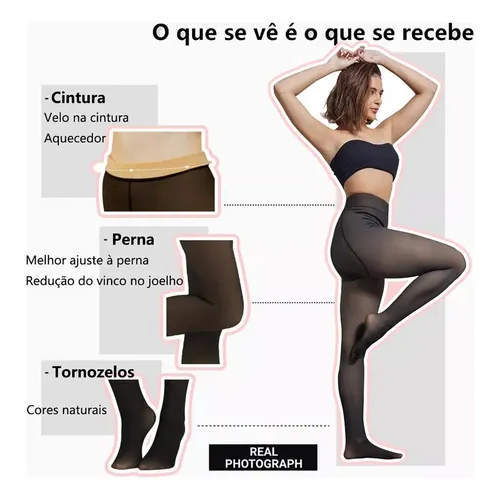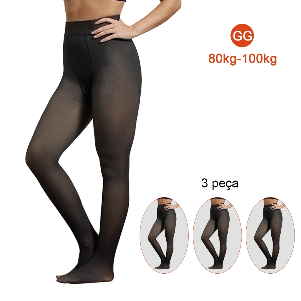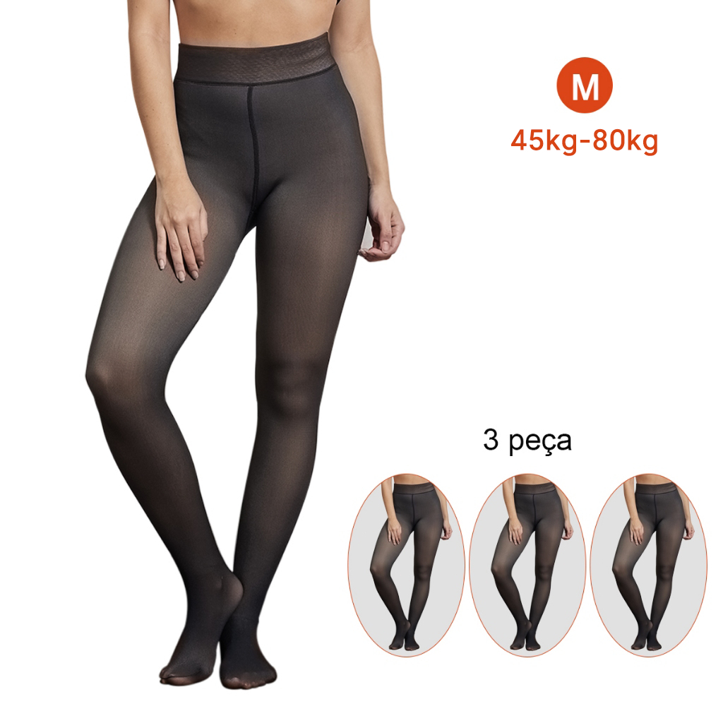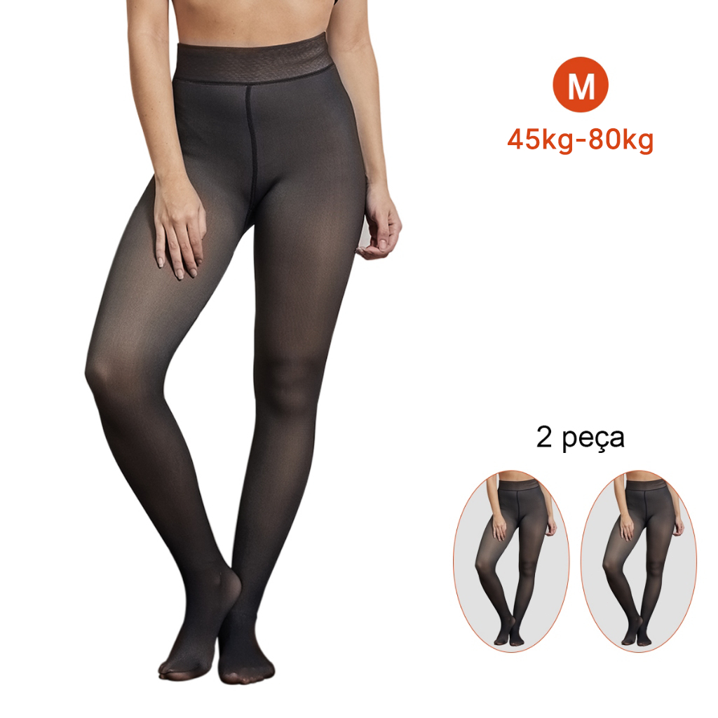 ROMANTIC CROWN Meia-Calça Feminina Térmica Translúcida Super Stretch Slim com Peluciada para Inverno