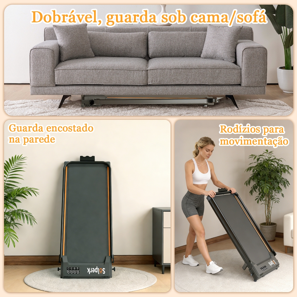 Esteira Ergométrica Elétrica 2.0HP Silenciosa Dobrável com Bluetooth 12km/h, Capacidade 120kg Uso Residencial (127V)