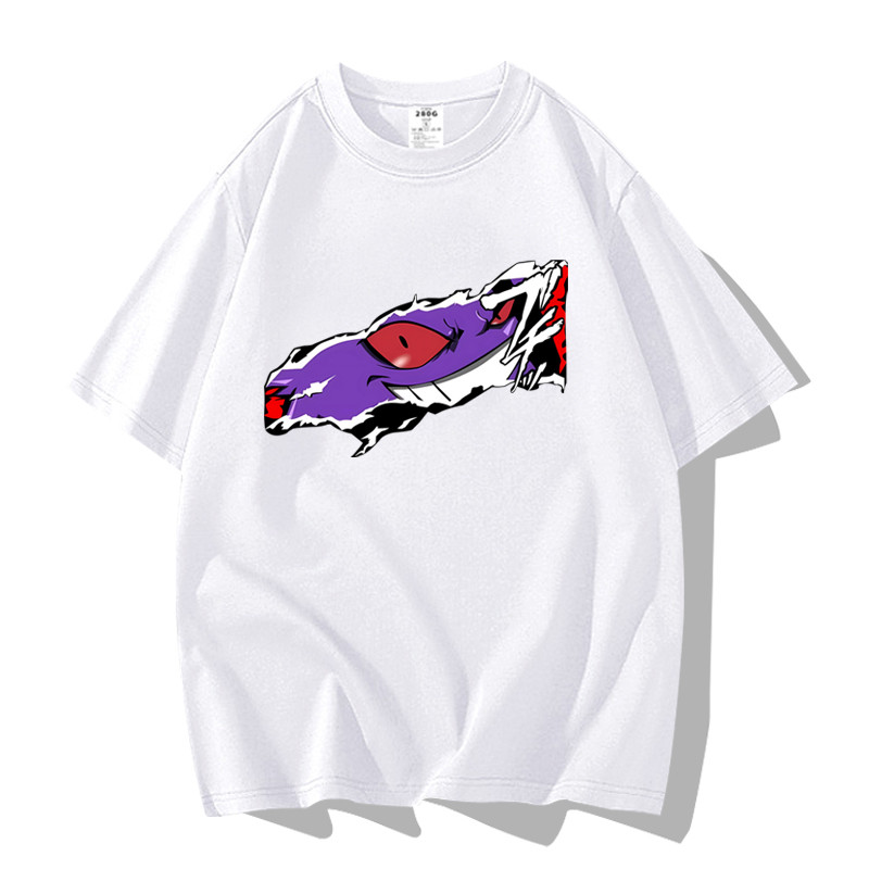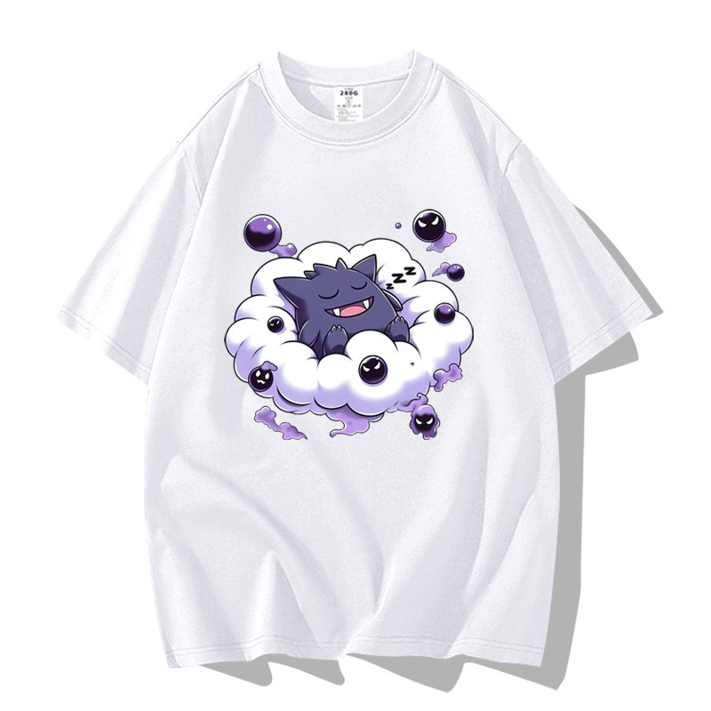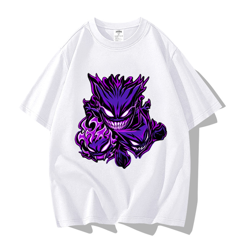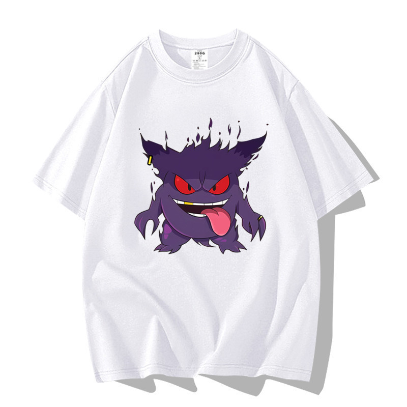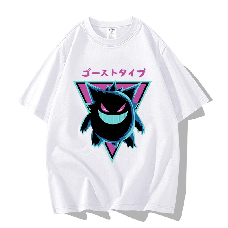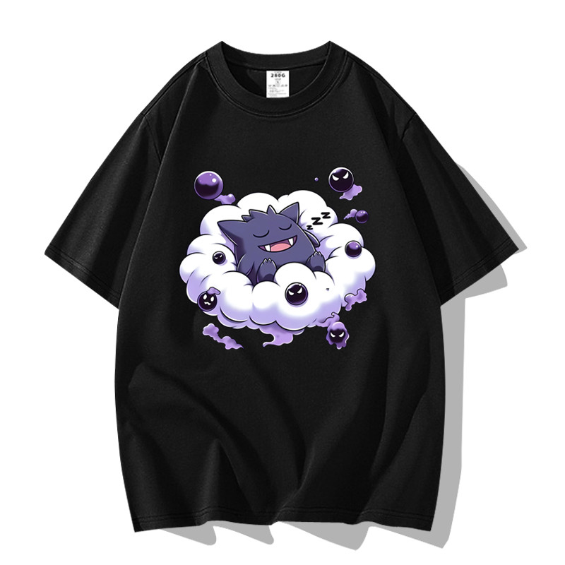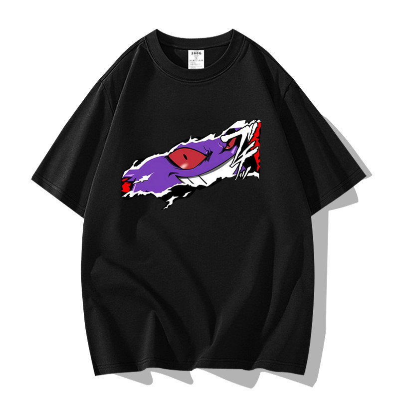 Camiseta Preta Unisex com Design dos Personagens Pokémon Gengar e Seus Evolutivos, Estilo Pop Culture