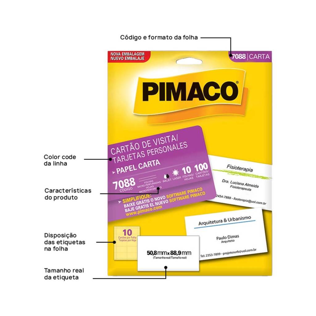 Papel cartão de visita 7088 com 10 folhas Pimaco