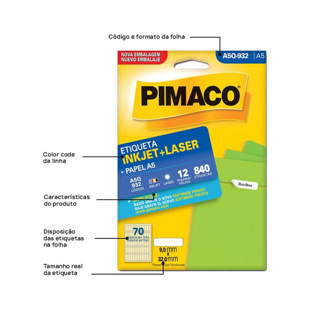 Etiqueta inkjet/laser A5Q932 com 12 folhas Pimaco