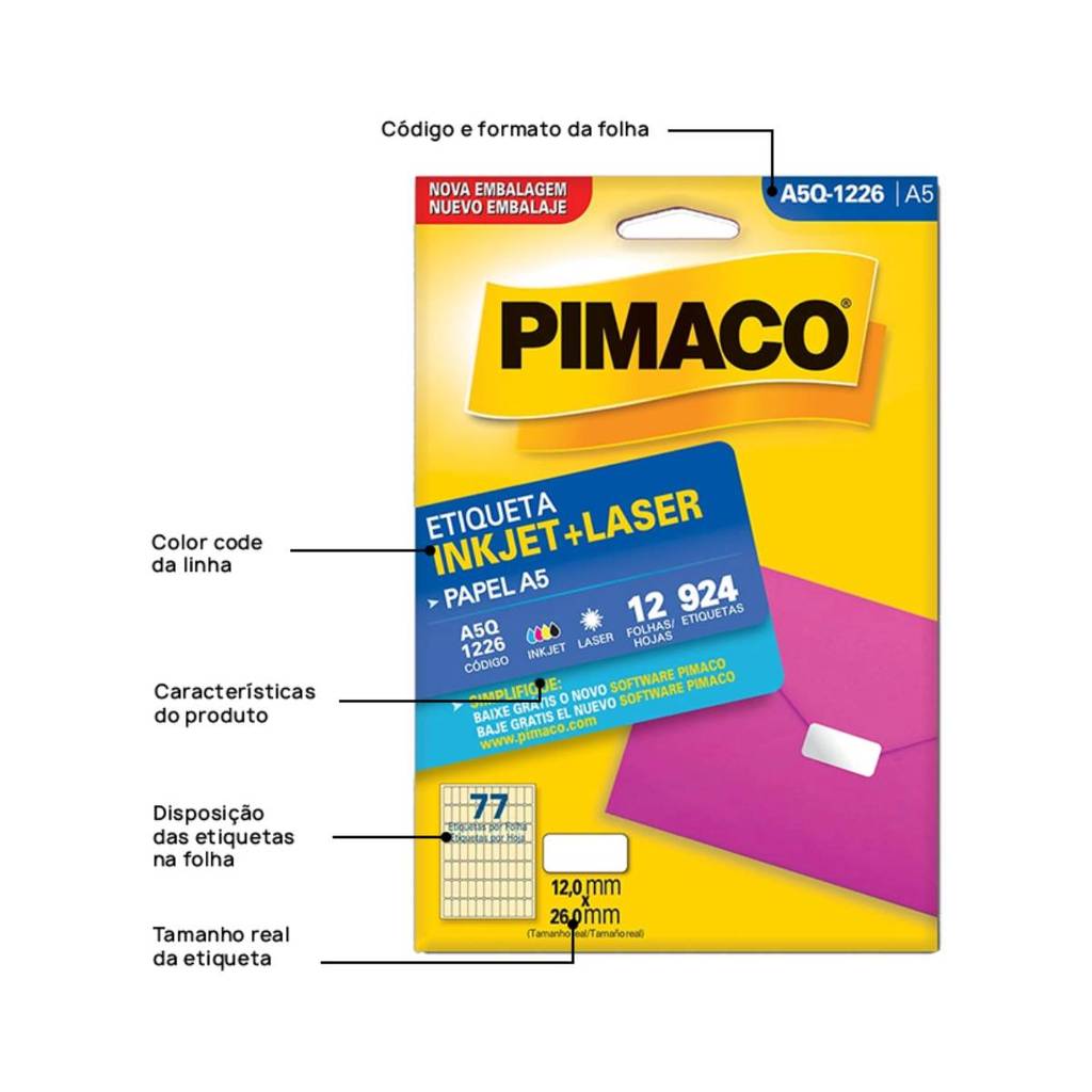 Etiqueta inkjet/laser A5Q1226 com 12 folhas Pimaco