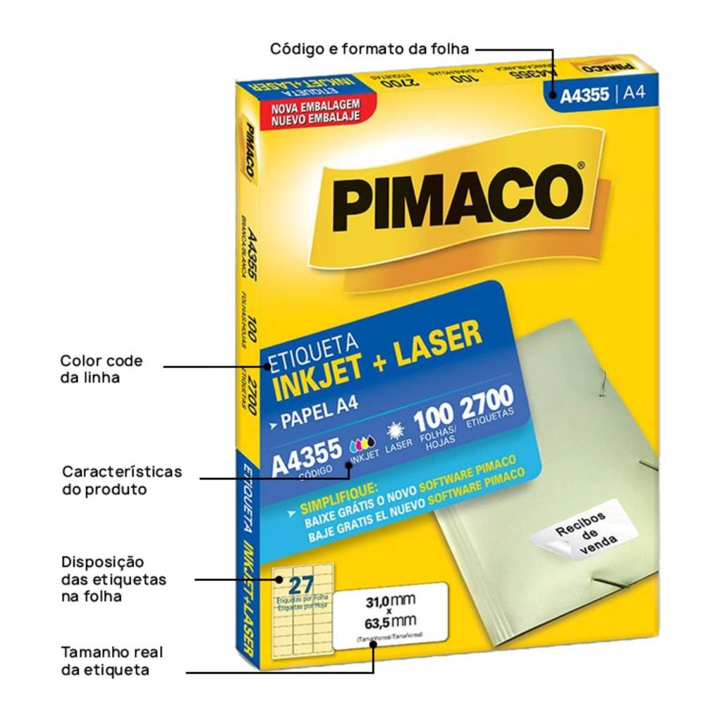 Etiqueta inkjet/laser A4355 com 100 folhas Pimaco