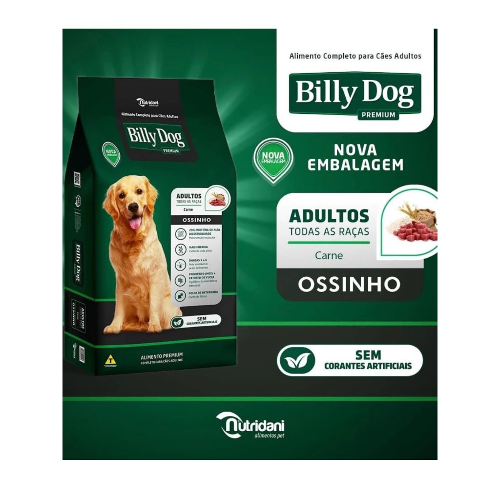 Ração Billy Dog ossinho premium carne 7kg,15kg e 25kg