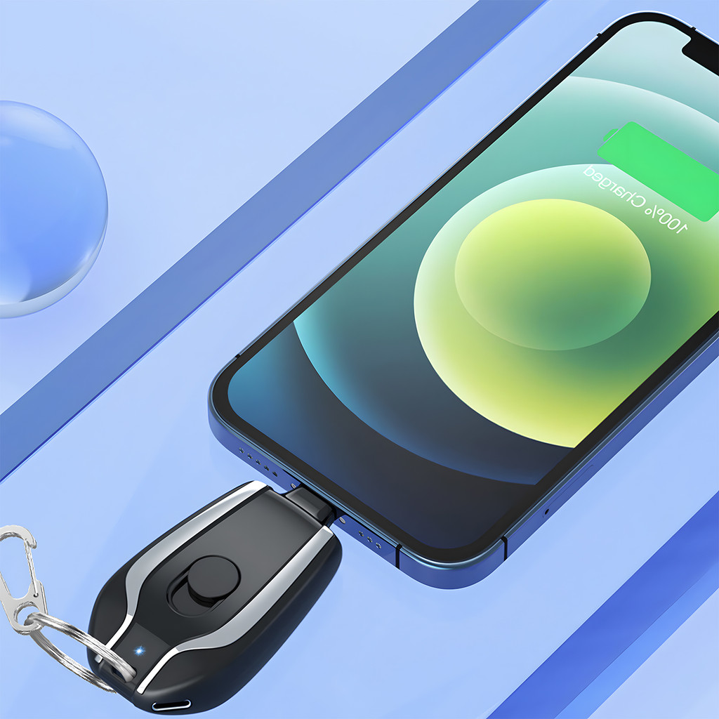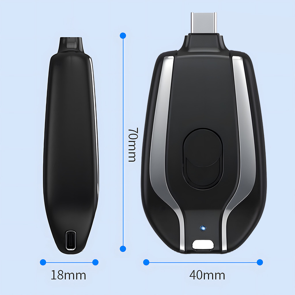 KIT 2 Carregador de Chaveiro Portátil 1500mAh | Mini Bateria Ultra-Compacta com Carregamento Rápido TIPO-C