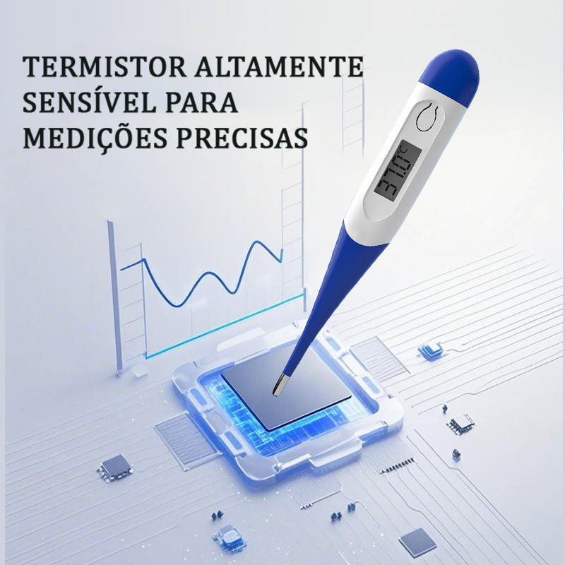 Kits 5 Termômetro Digital Clínico com Alerta Sonoro, Medição Rápida e Precisão ±0,1°C