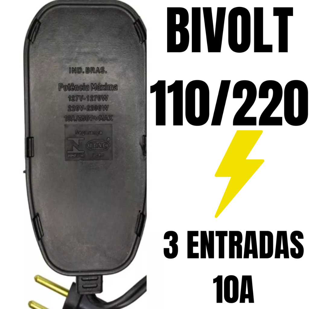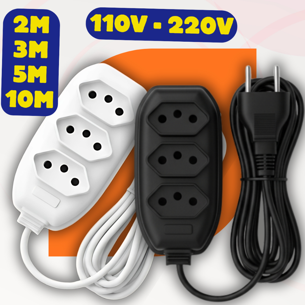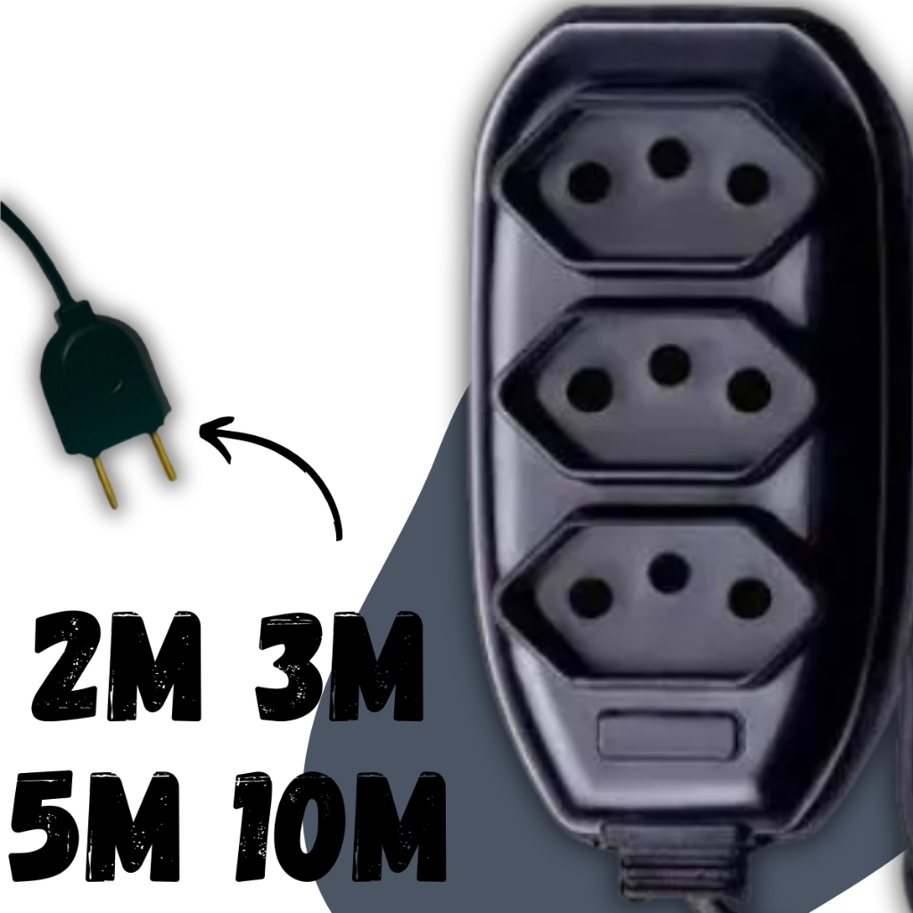 Extensão de Energia 10A Bivolt 110/220V 2m 3m 5m 10m Tripolar Preta Durável