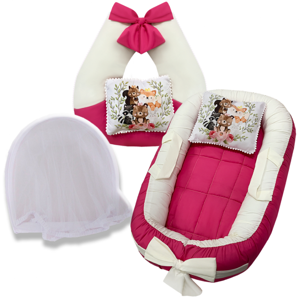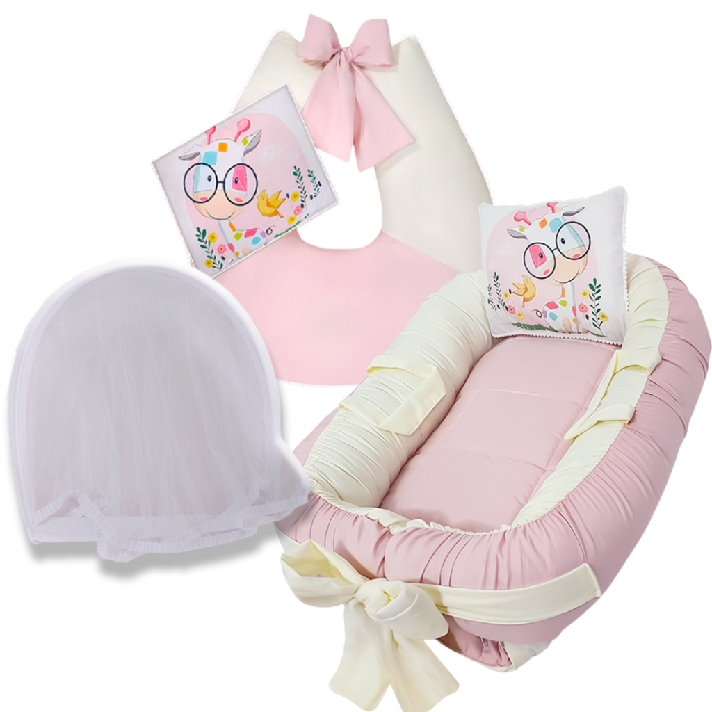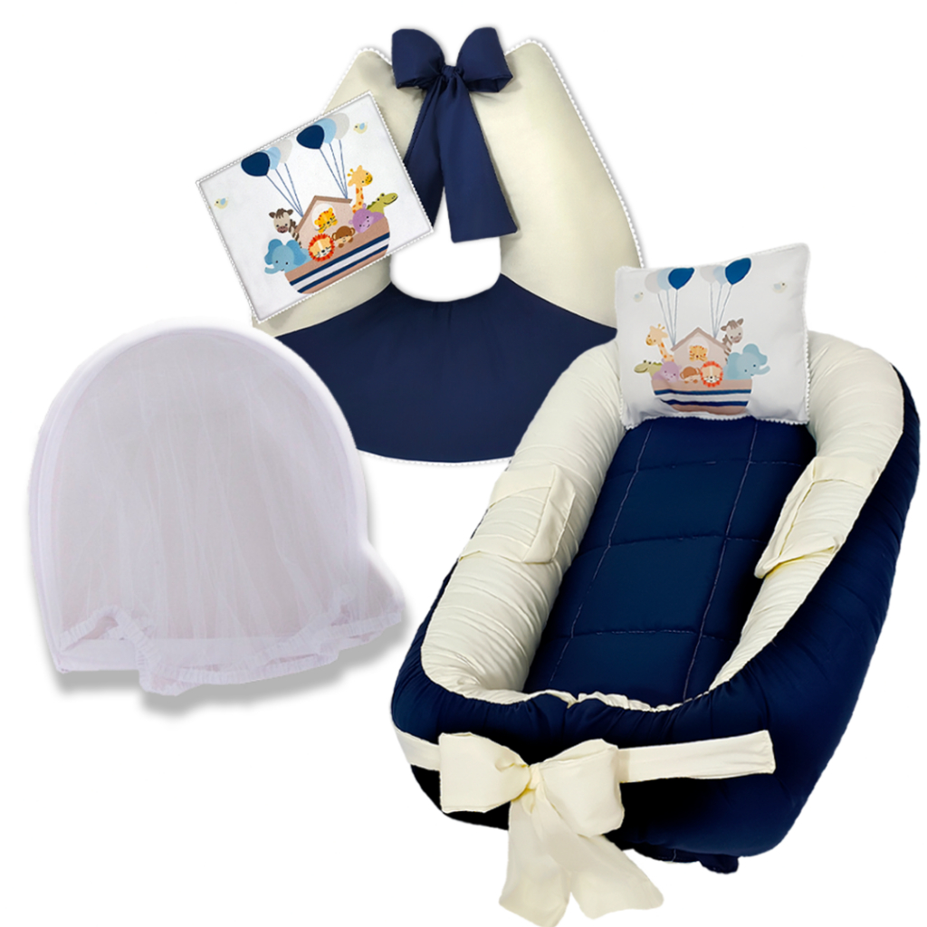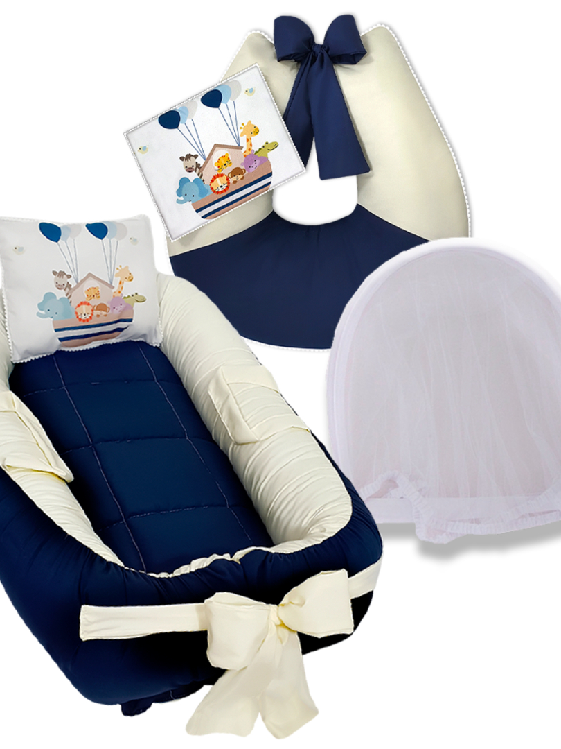 Kit Completo - Ninho Redutor, Almofada de Amamentação, Mosquiteiro e 2 Almofadinhas