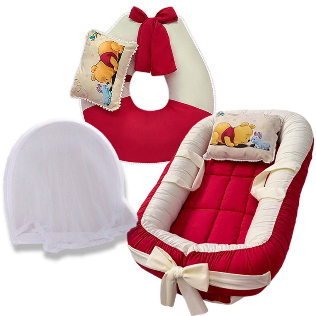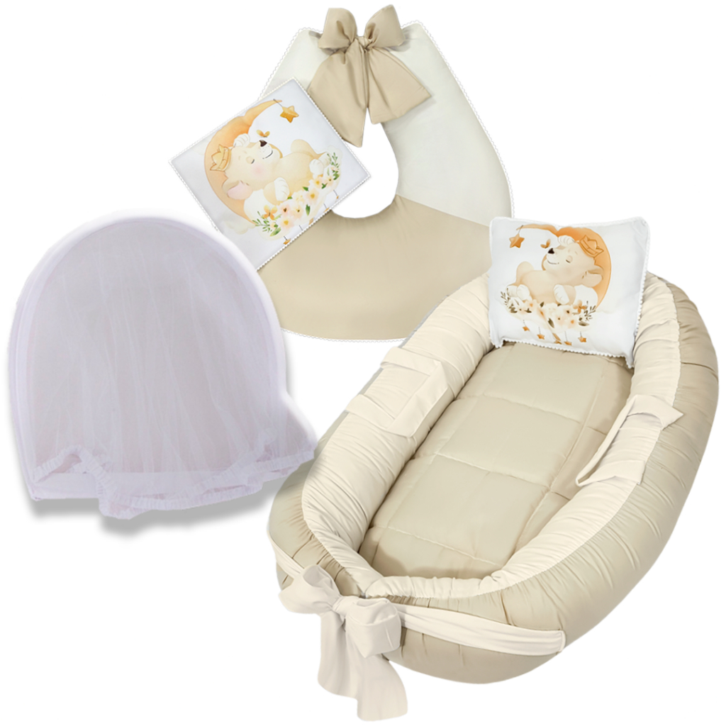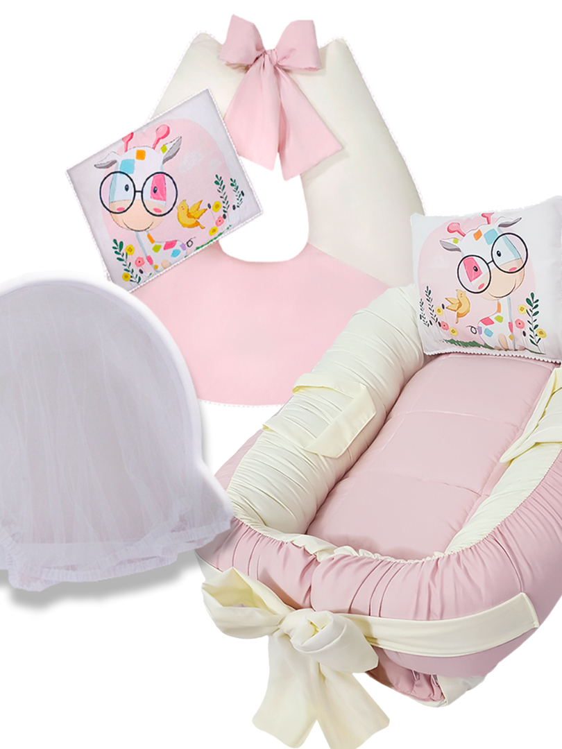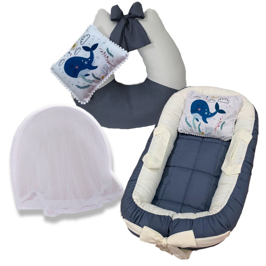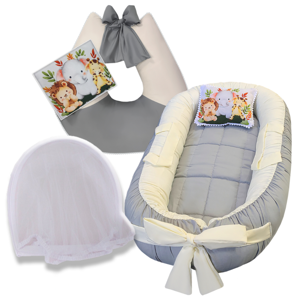 Kit Completo - Ninho Redutor, Almofada de Amamentação, Mosquiteiro e 2 Almofadinhas