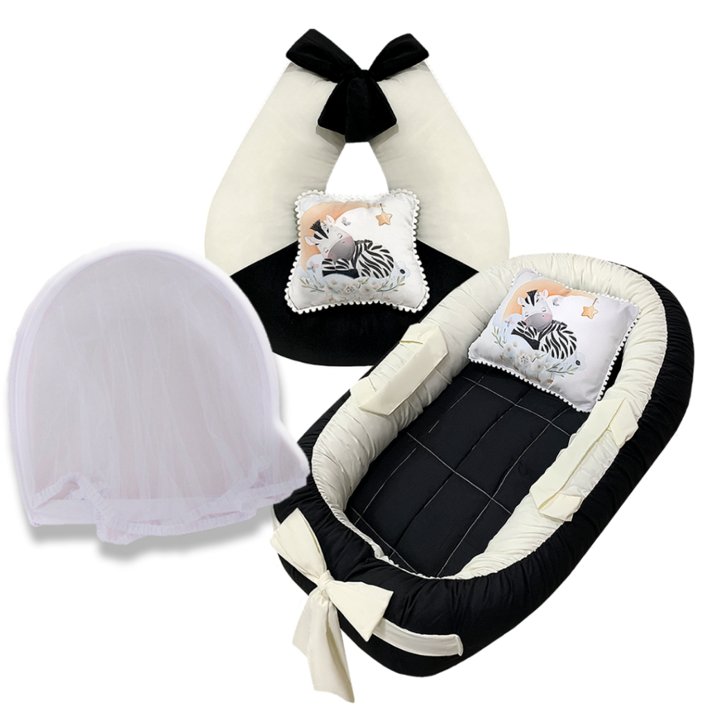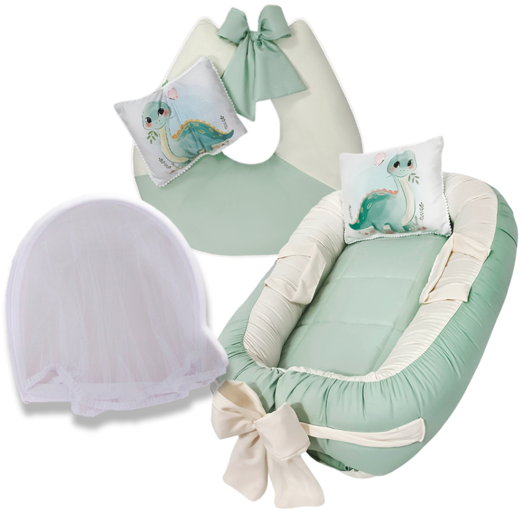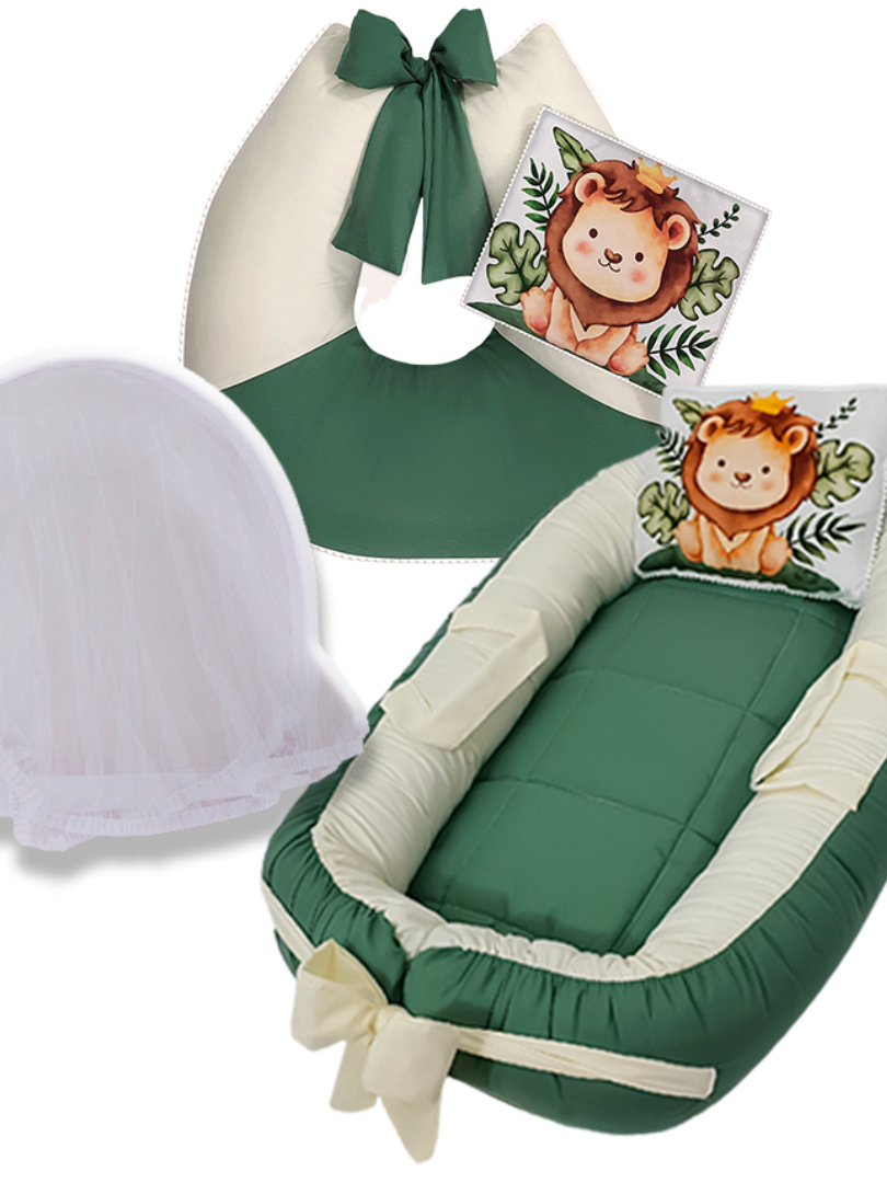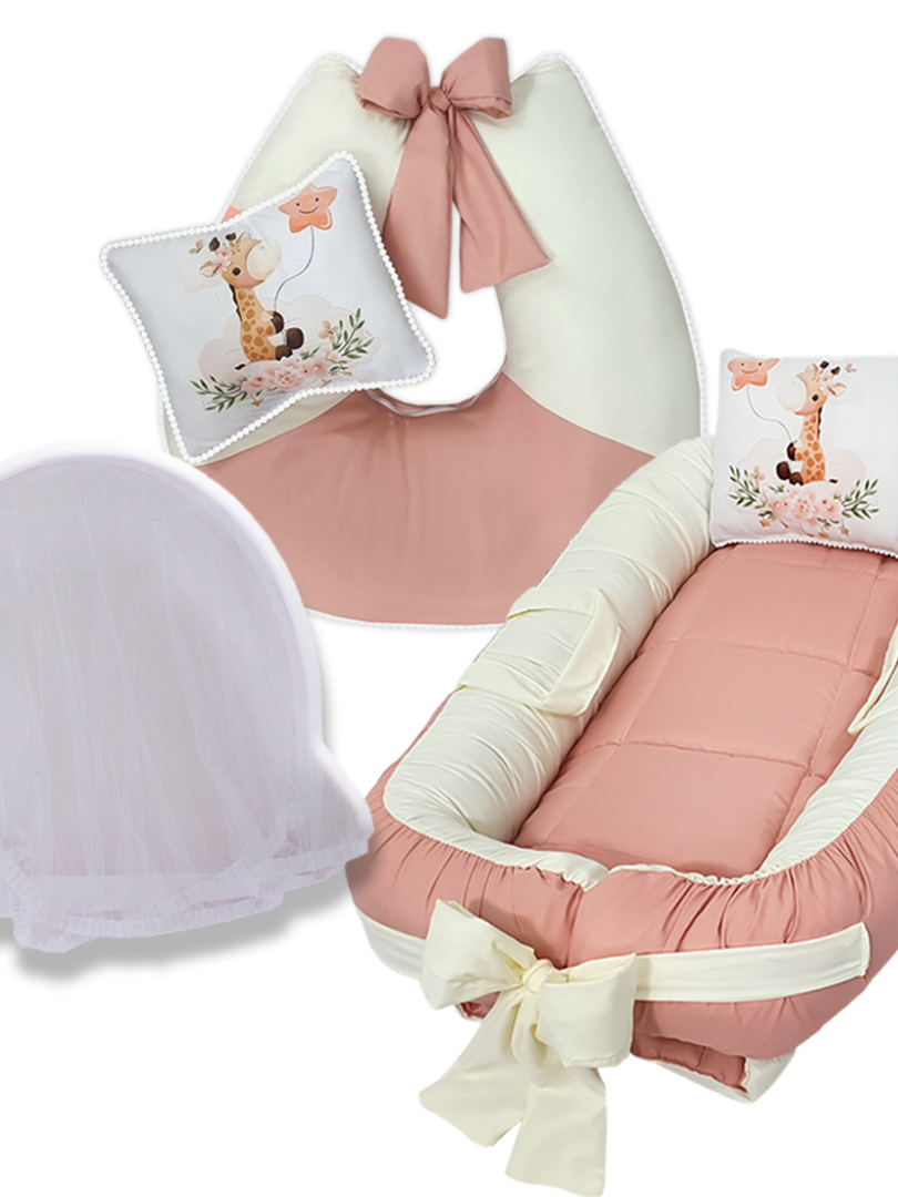 Kit Completo - Ninho Redutor, Almofada de Amamentação, Mosquiteiro e 2 Almofadinhas