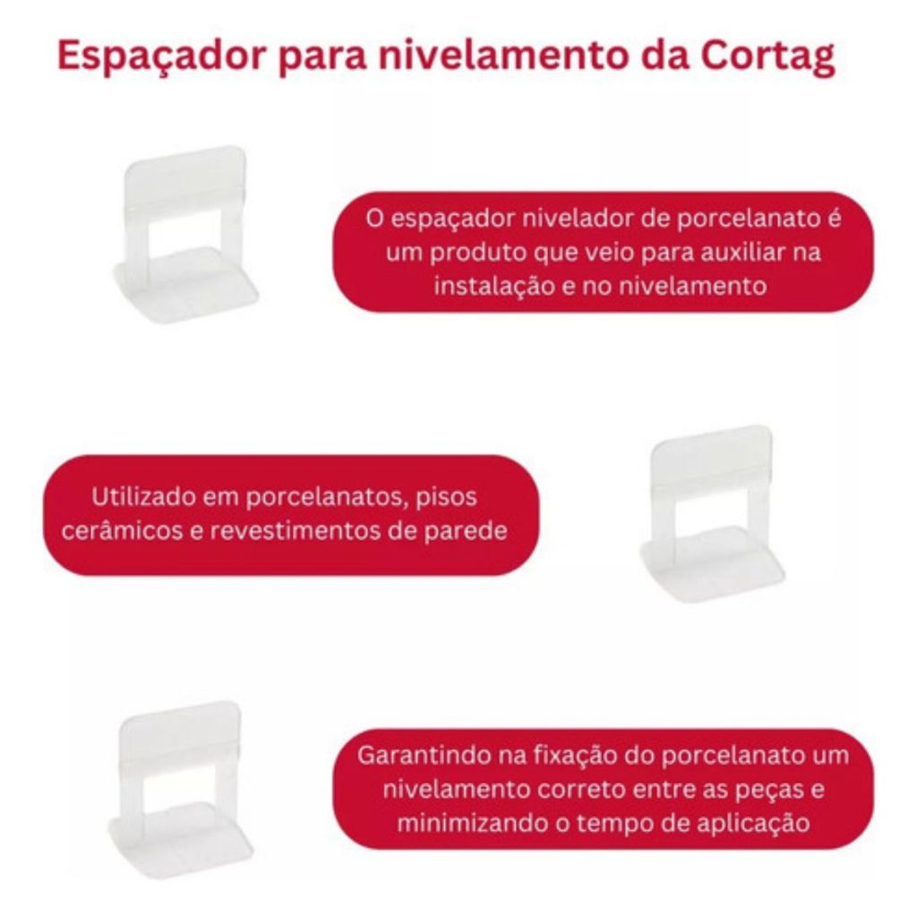 Espaçador Nivelador Porcelanato 1mm 1,5mm 2mm Cortag - 500pçs