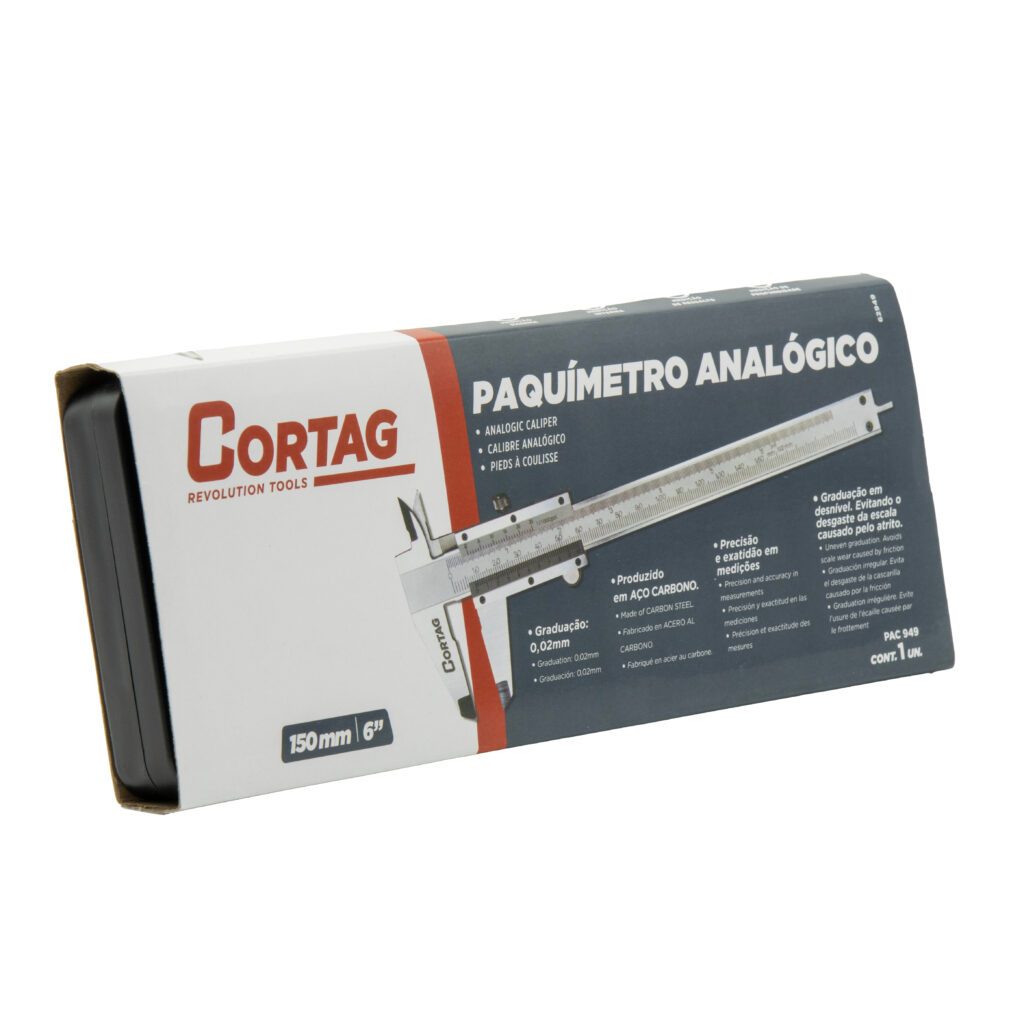 Paquímetro Metálico Analógico Cortag 150mm/6" Com Estojo Indústria Mecânica Marcenaria PAC94