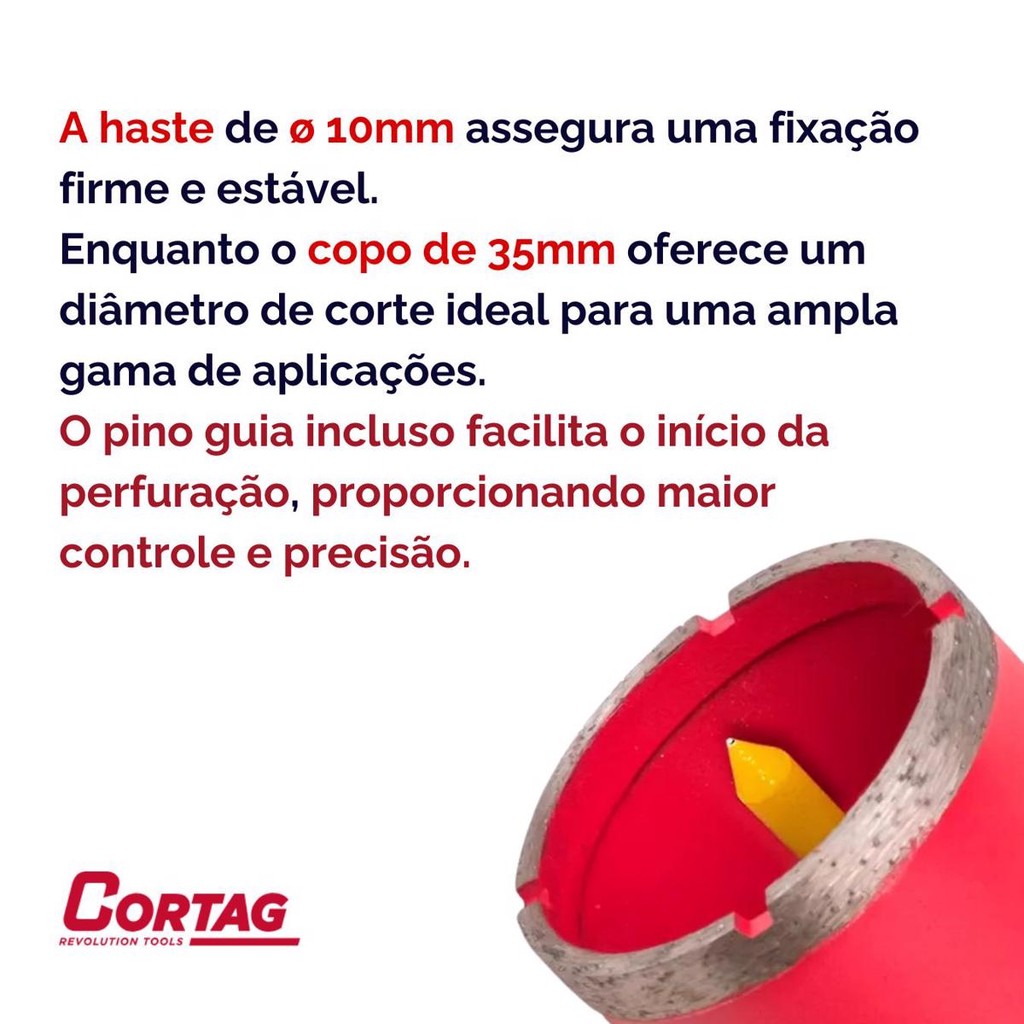 Serra Copo Diamantada - Haste E Pino Guia P/ Alvenaria 35 Mm