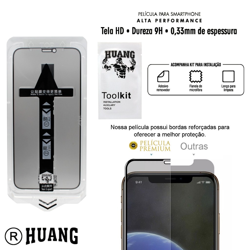 kit 4pcs 2pcs 1pcs Película Premium Huang Magic Box Full Cover Privativa iPhone 1716 15 14 13 12 11