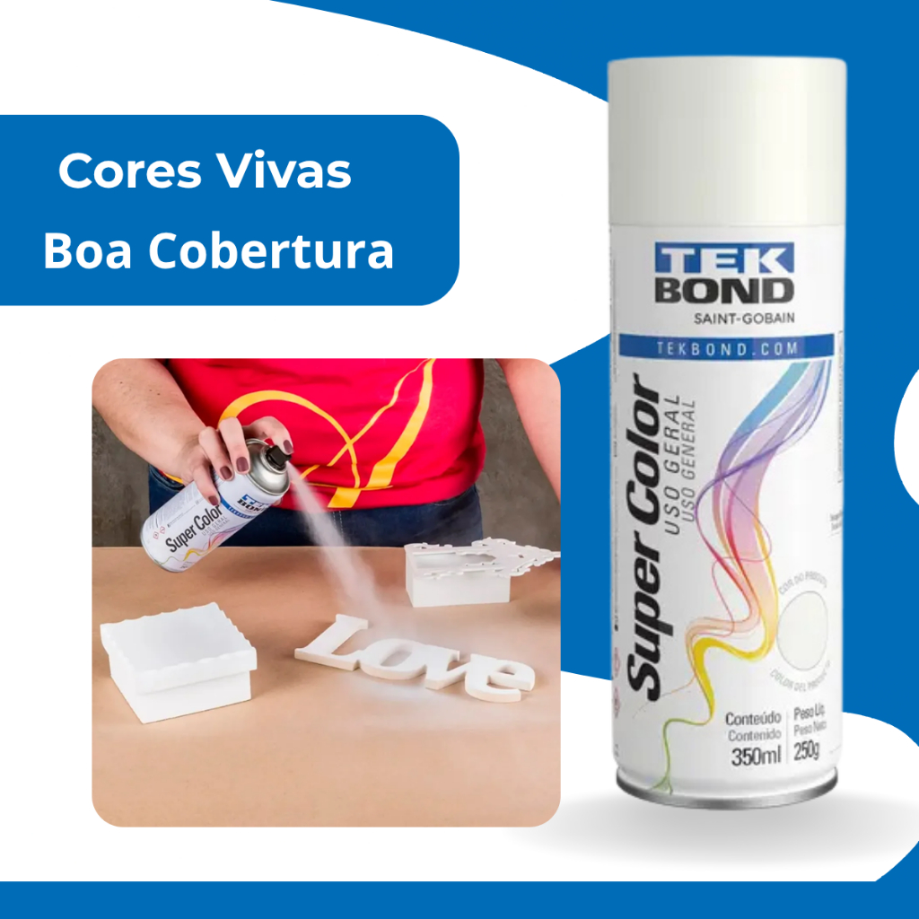 Tinta Spray Branco Brilhante Caixa C/6 Latas Tekbond 300ML