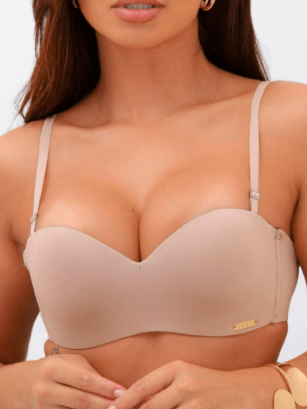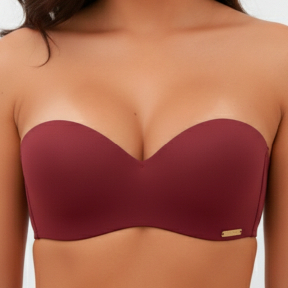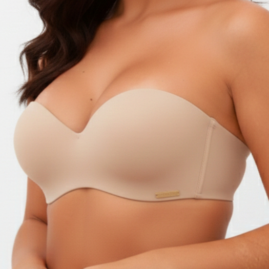 Sutiã Tomara que Caia Alças Removíveis com Bojo Efeito Silicone Ajustável Fecho triplo Top Poliamida