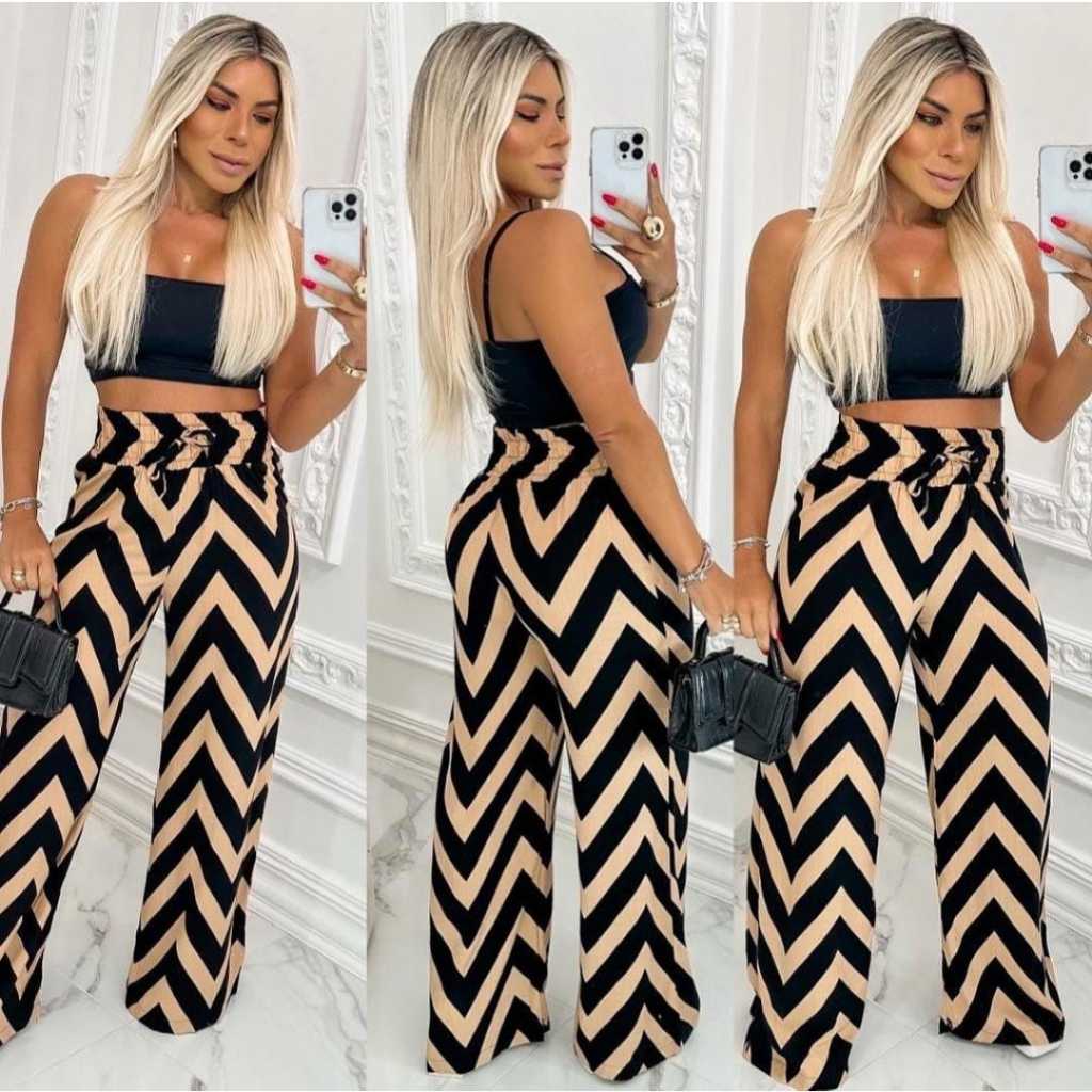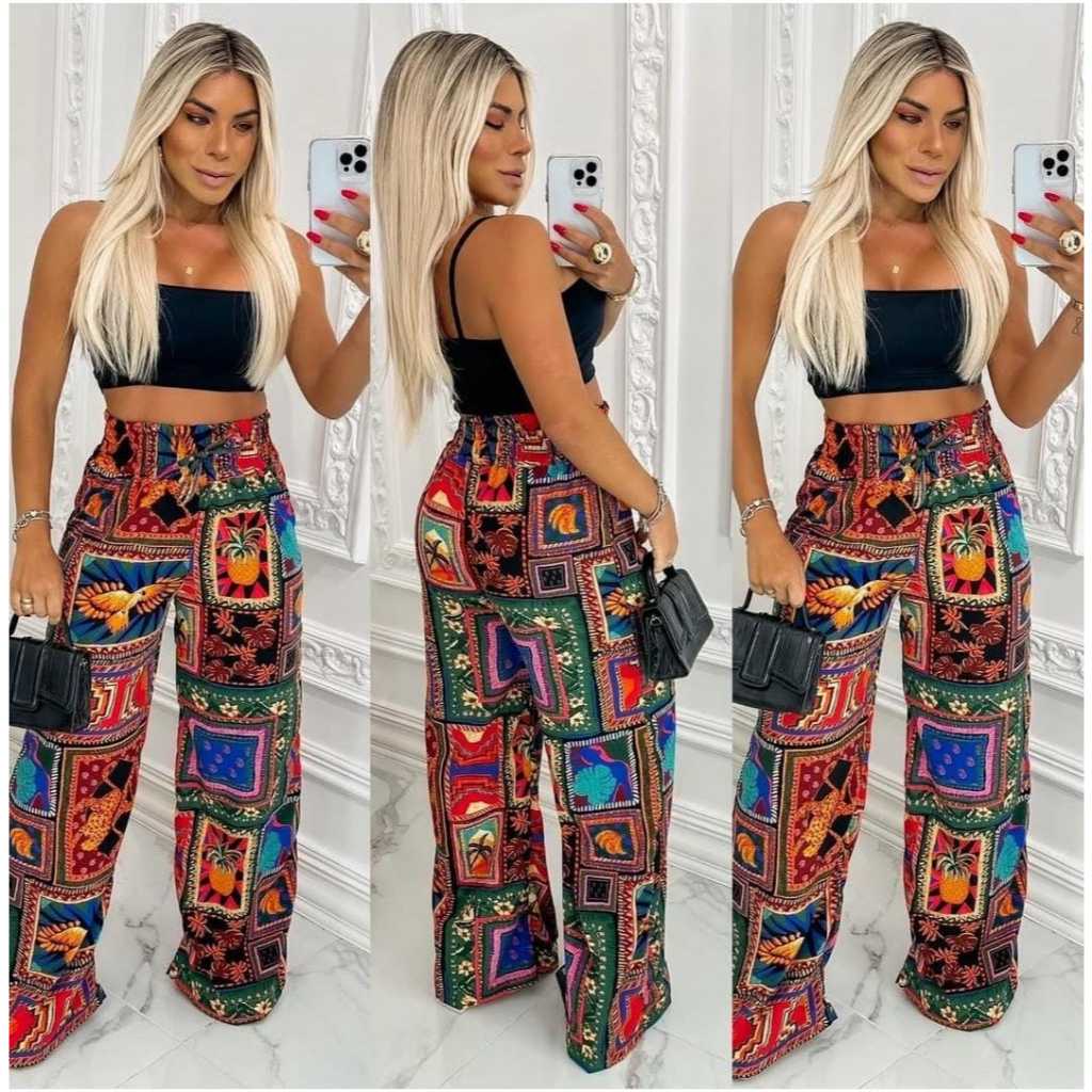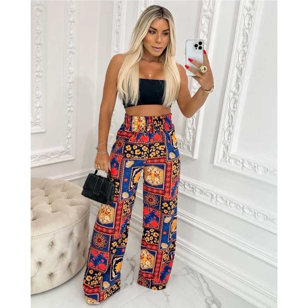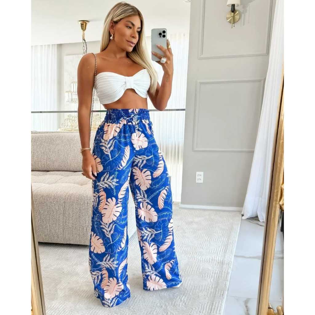 Calça Pantalona Feminina de Cintura Alta com Elástico Largo